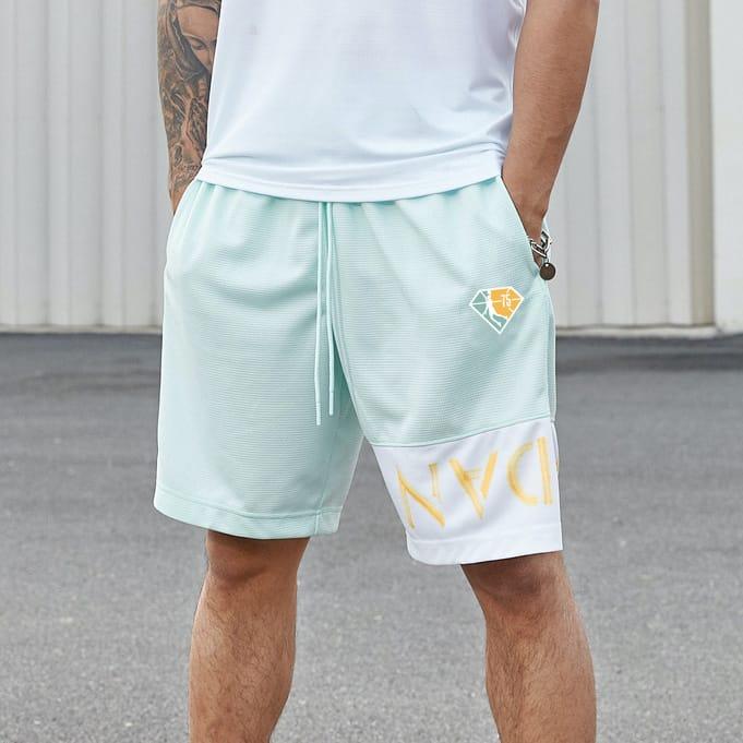 Шорты Ehot Jordan Stripe Mint Shorts мятного цвета с широкими белыми полосками и светлой надписью Jordan удобны для спорта и повседневной носки. Шорты длиной до колена из эластичной сетчатой ткани отличаются прочностью и пропускают воздух.