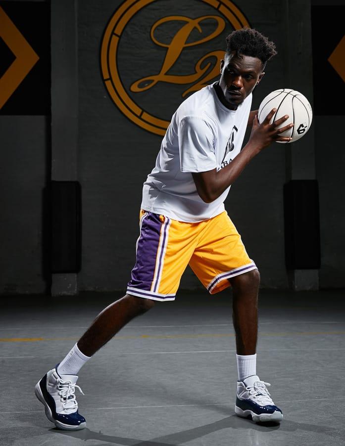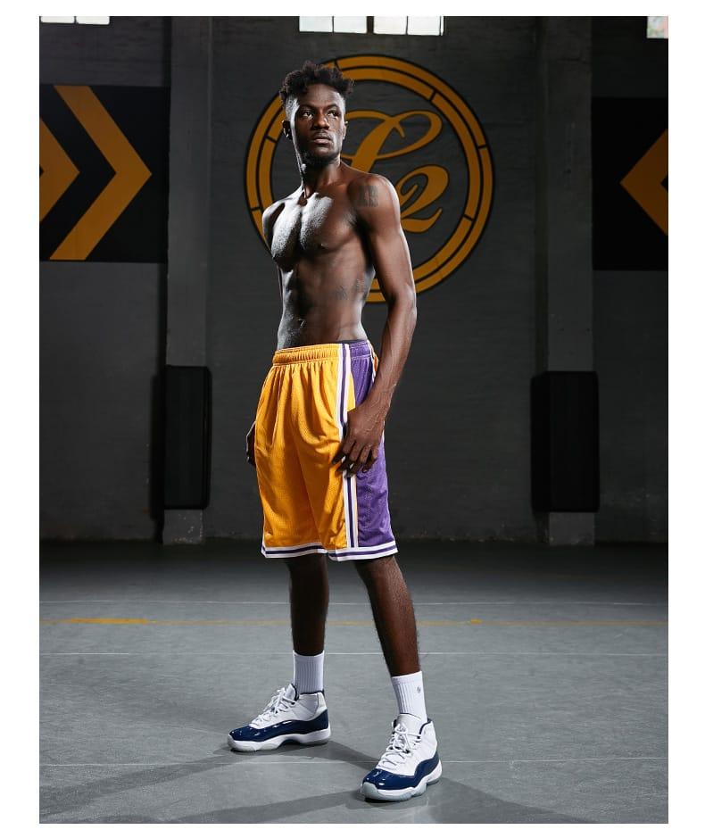 Шорты Ehot Lakers Stripe Yellow Shorts баскетбольные желтого цвета имеют длину до колена и дополнены фиолетовыми вставками по бокам. Шорты в цветах клубах LA Lakers удобно сидят на талии и изготовлены из двухслойной сетчатой ткани. Они прекрасно подходят для занятий спортом, так как отличаются эргономичным кроем и эффективно впитывают влагу.