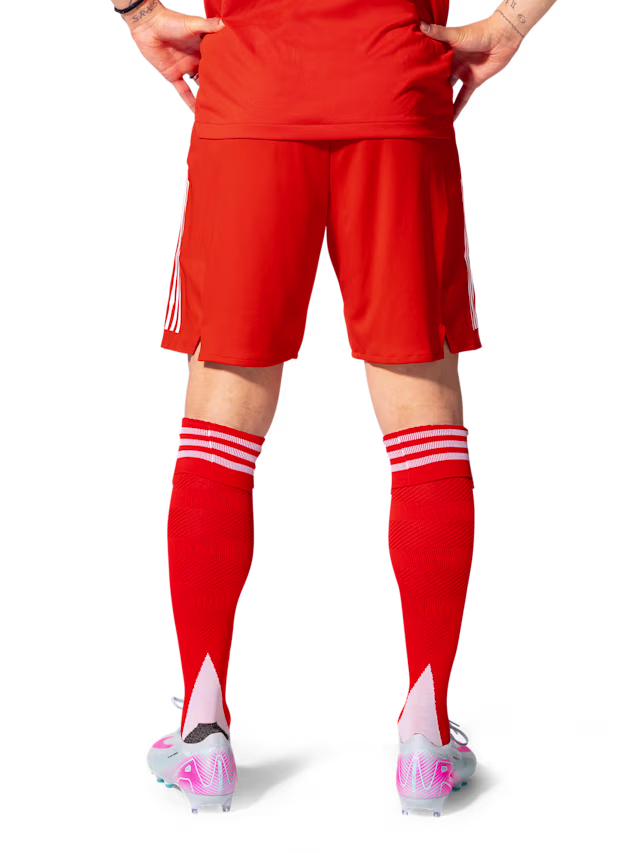Официальные футбольные шорты сезона 2025/26 — часть домашнего комплекта мюнхенской Баварии, созданные для тех, кто ценит комфорт и стиль в спортивной экипировке. В этих шортах игроки Баварии выходят на поле в матчах Бундеслиги и Лиги чемпионов, а болельщики получают возможность почувствовать себя частью команды. Модель выполнена из лёгкой и дышащей ткани, которая обеспечивает максимальный комфорт, вентиляцию и свободу движений во время тренировок, игр или повседневной носки. Современный спортивный крой и официальная эмблема клуба Бавария подчеркивают оригинальность и престиж этой формы.
