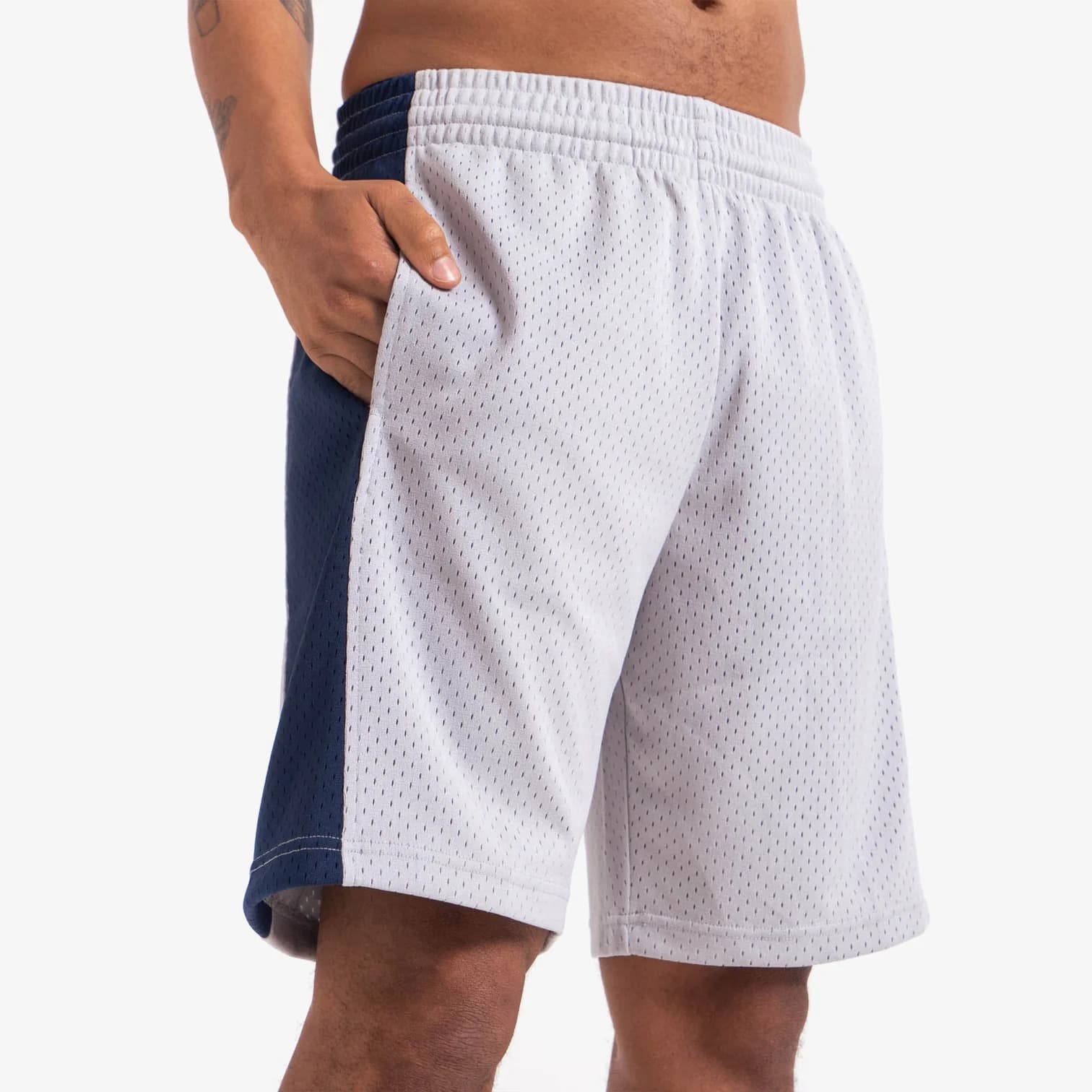 Шорты Mitchell & Ness Georgetown Hoyas 1992-93 Hardwood Classics Throwback Swingman NCAA Shorts, вдохновленные шортами для игры на корте NCAA 1992-93 года, состоят из 100% полиэстера с подкладкой из ткани, эластичного пояса с утягивающим шнурком, боковых карманов для удобного хранения вещей и дизайнерских деталей для создания ретро-образа старой школы. Никто не сможет соперничать с вашей страстью к игре, когда на вас будут эти командные шорты.- Цвет: Белый