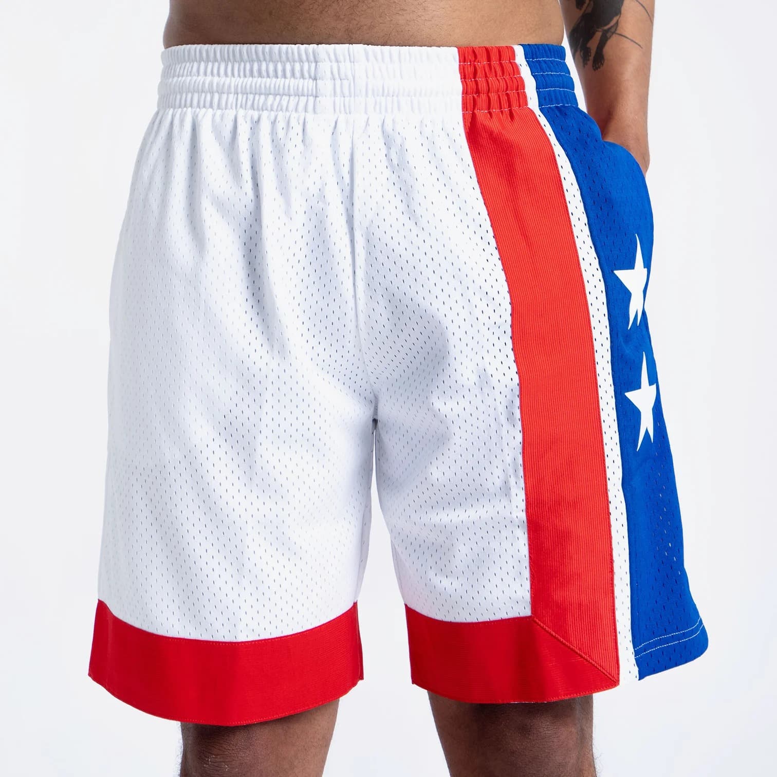 Белые шорты Mitchell & Ness New Jersey Nets 1973-74 Hardwood Classics Throwback Swingman NBA White Shorts, вдохновленные ретро-шортами NBA, выполнены из 100% полиэстера с подкладкой, имеют эластичный пояс с утягивающим шнурком, боковые карманы для удобного хранения вещей и детали для создания ретро-образа старой школы.- Цвет: Красный/Голубой/Белый