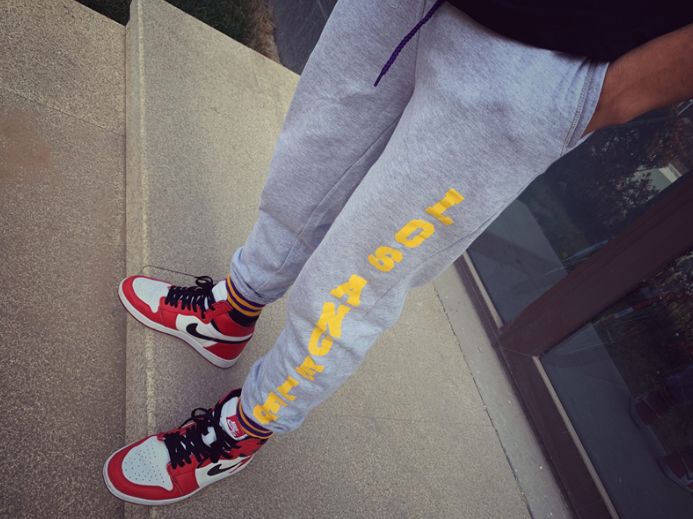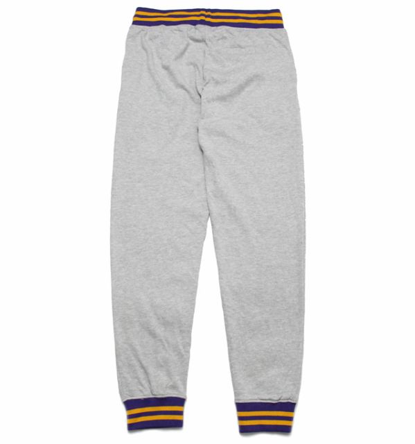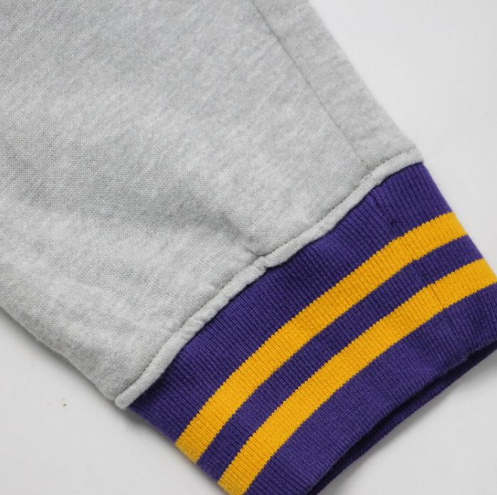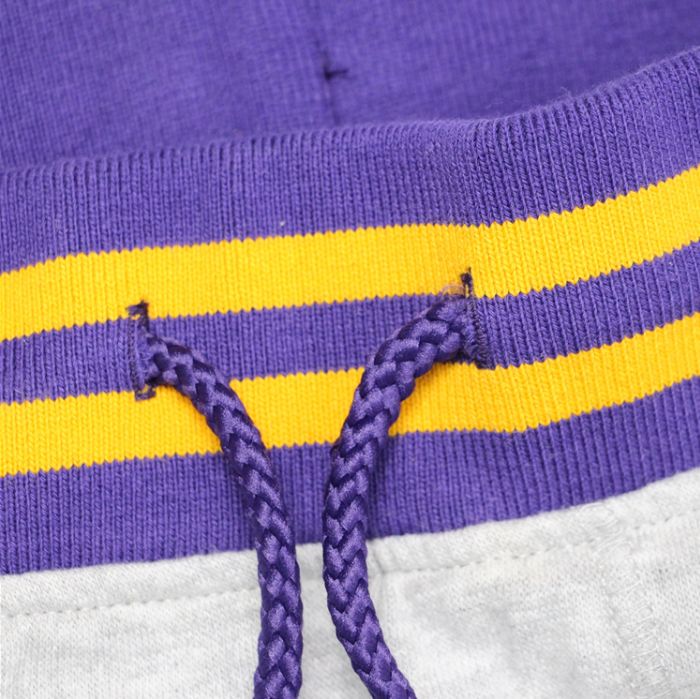 Спортивные брюки в цветах клуба Лос-Анджелес Лейкерс. Выполнены на тонком флисе, подходят для весны и осени. Хорошо узнаваемые фиолетово-золотые полоски на поясе и манжетах.- Материалы: хлопок, флис