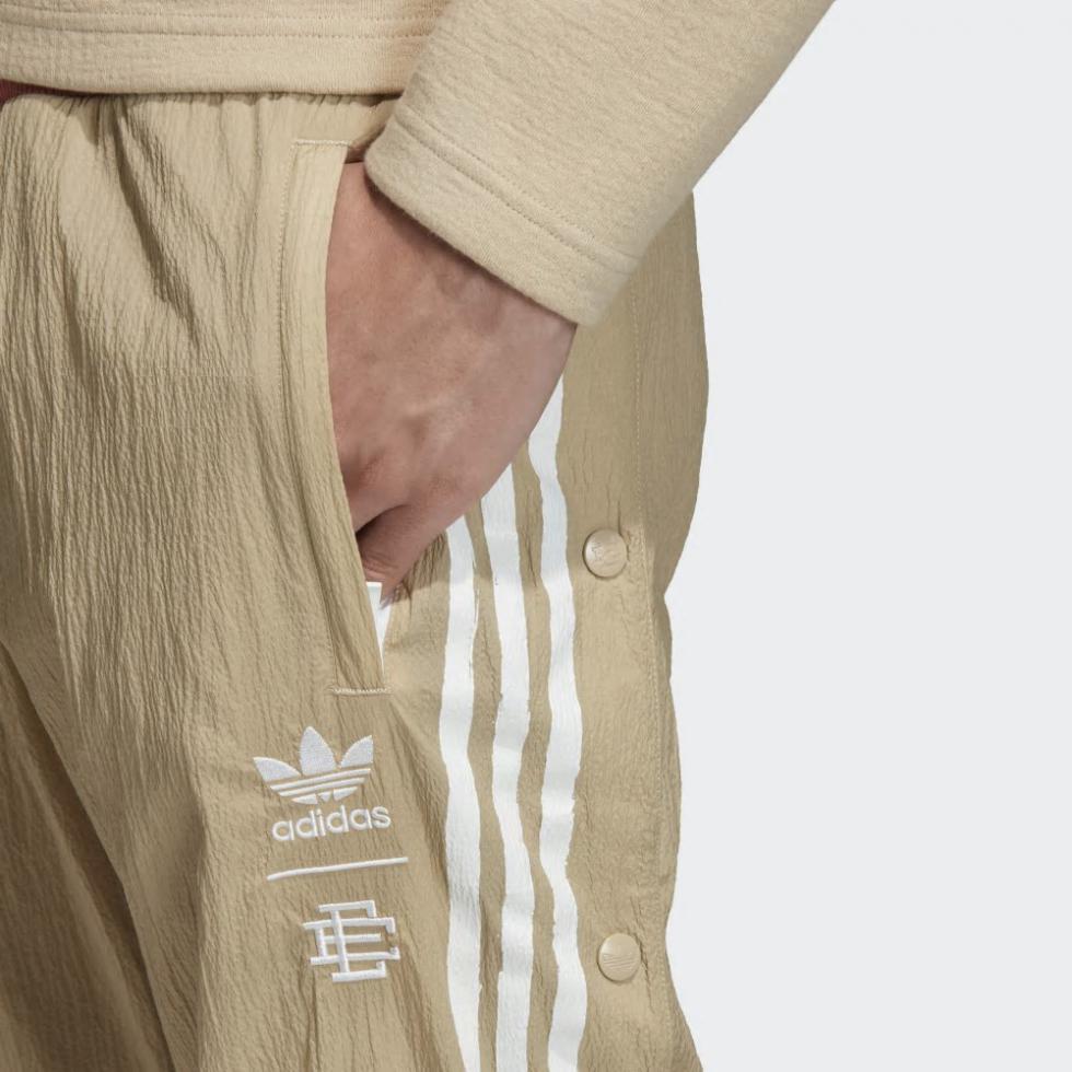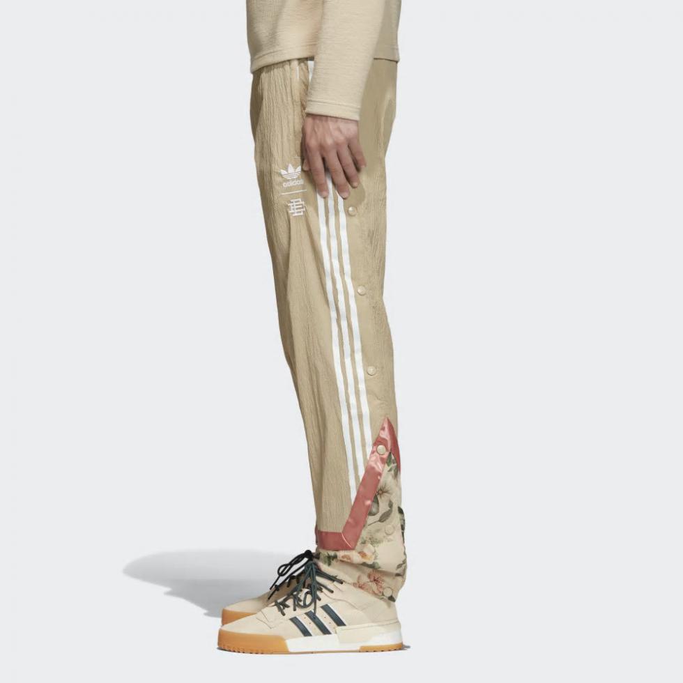Спортивные брюки adidas x Eric Emanuel Pants Stone Khaki сделаны из высококачественного материала в цвете каменный хаки. Одноименный лейбл Eric Emanuel создает произведения, объединяющие рэп, городскую культуру и баскетбол. Он создал культ своей роскошной эстетики спортивной одежды и аутентичного Нью-Йорка. На этот раз Eric Emanuel черпает вдохновение в цветочных обоях и картинах маслом эпохи Возрождения. Эти брюки изготовлены из жатой добби-ткани и украшены вставками из нежно-розовой ленты с цветочными сетками. Брюки с высокой эластичной талией и застежками на кнопках по всей длине обеих штанин дополняют их ретро-привлекательность.