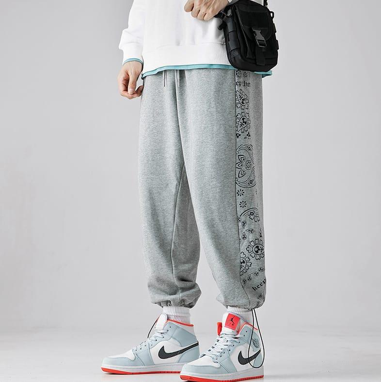 Штаны Ehot Paisley Grey Pants светло-серого цвета изготовлены из мягкого материала, который свободно пропускает воздух. Дизайн спортивных брюк дополняют вставки с черным узором пейсли по бокам. Штанины внизу снабжены регулировкой по ширине и без труда затягиваются до нужного размера.