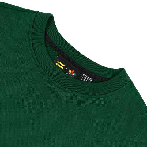Свитшот adidas Pharrell Williams Basics Crewneck Sweatshirt Dark Green сделан из очень мягкого и приятного материала в темно-зеленом цвете. На первый взгляд, этот свитшот от последнего сотрудничества adidas с Фарреллом Уильямом может показаться лишенным фирменного стиля, но он просто хорошо скрыт - логотип «Human Race» и трилистник вышиты на манжете и затылке соответственно. Он сшит из мягкого хлопкового джерси насыщенного альпийского зеленого цвета, гармонирующего с радужной цветовой палитрой линии уютных базовых вещей. Ребристые манжеты и нижняя резинка создают ощущение уюта. Черная тесьма с графическим принтом «Pharrell Williams for the Human Race» на шее. Свободная посадка. Материал свитшота прочный и его нелегко повредить при частой стирке.