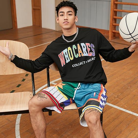 Свитшот Ehot Who Cares Rainbow Sweatshirt черного цвета обладает свободным кроем со спущенными плечами. Его грудь украшена цветным принтом с крупной надписью из разноцветных букв, а руки - белыми молниями. Одежда прекрасно подходит для тренировки или прохладной погоды.