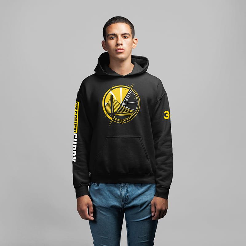 Худи Golden State Warriors Curry Hoodie из плотного трикотажа с контрастным принтом. Толстовка выполнена в монохромном цвете и дополнена крупной символикой команды Golden State Warriors, а также номером игрока на спине и именем на рукаве.- Цвет: Черный, Синий, Белый