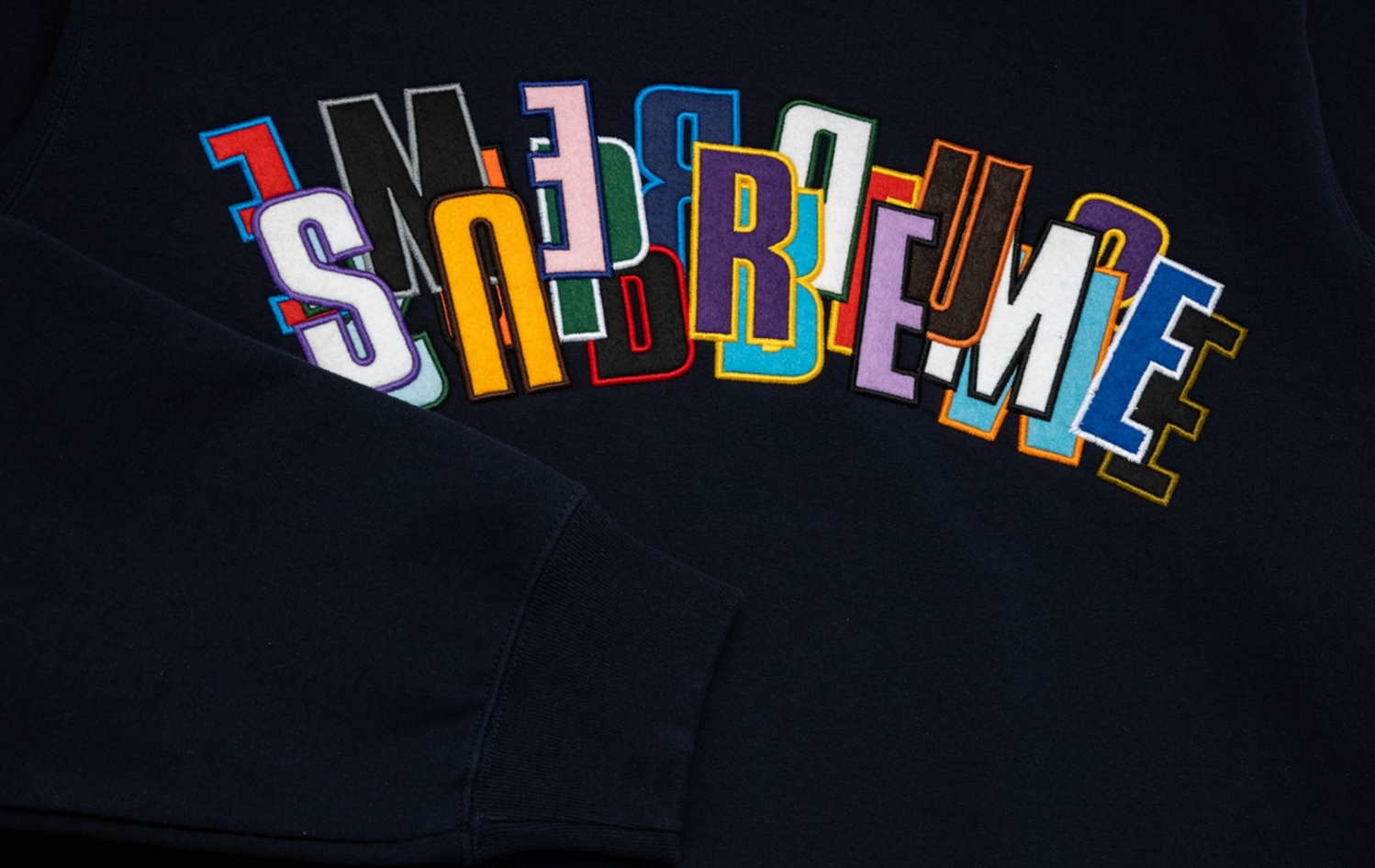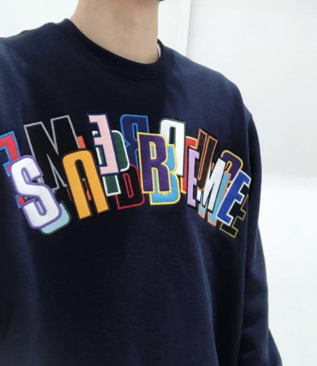 Заказать поиск толстовки Supreme Stacked Crewneck Sweatshirt Navy с бесплатной доставкой.