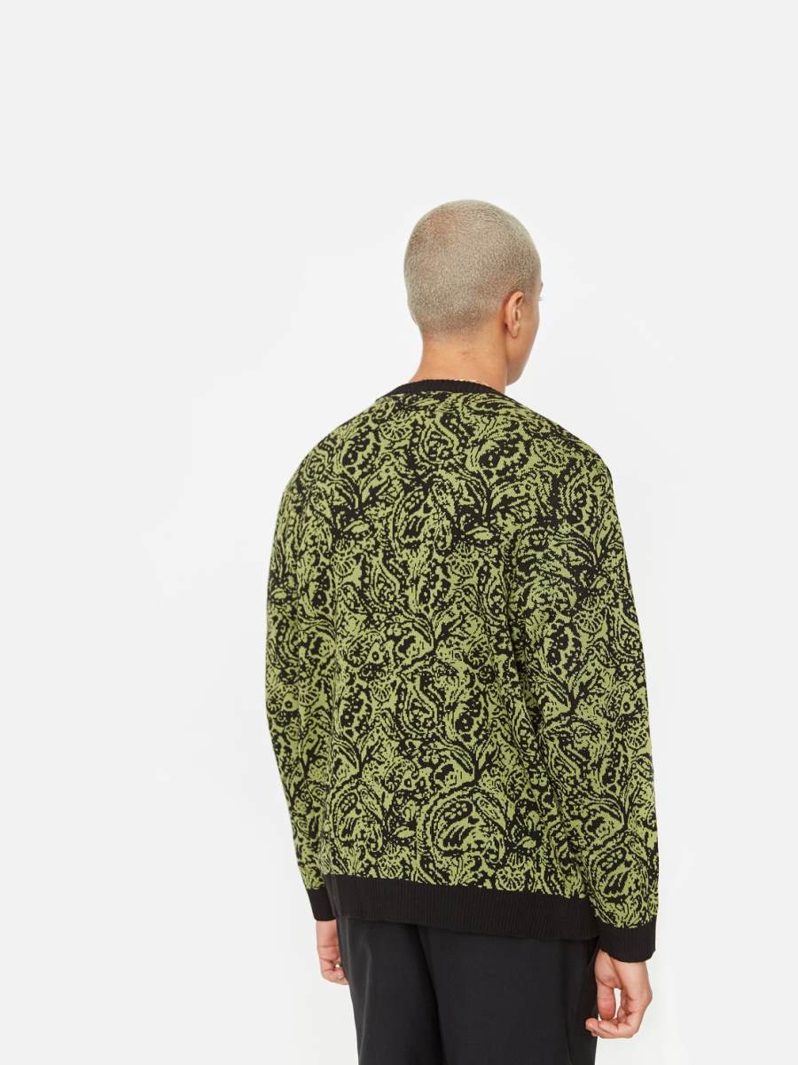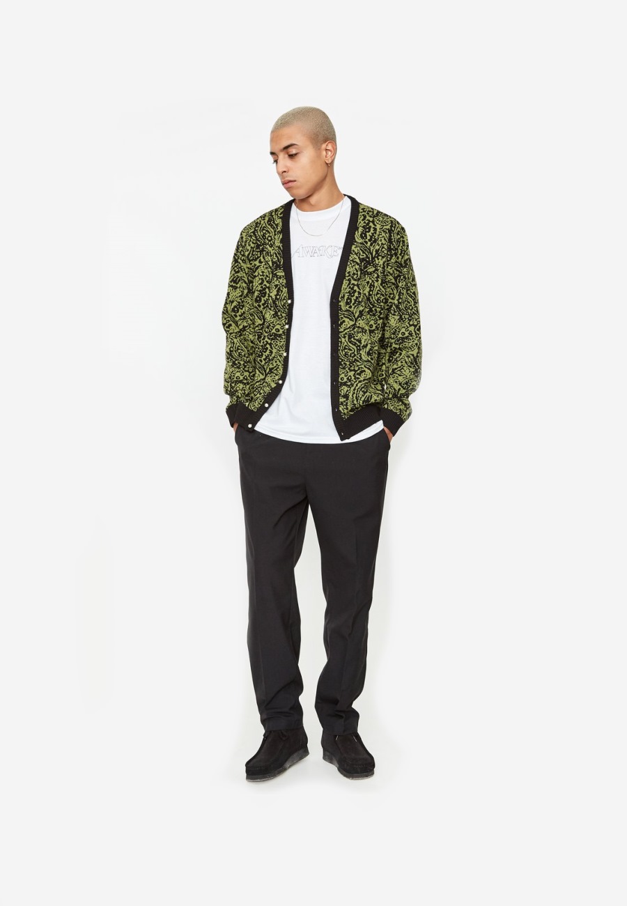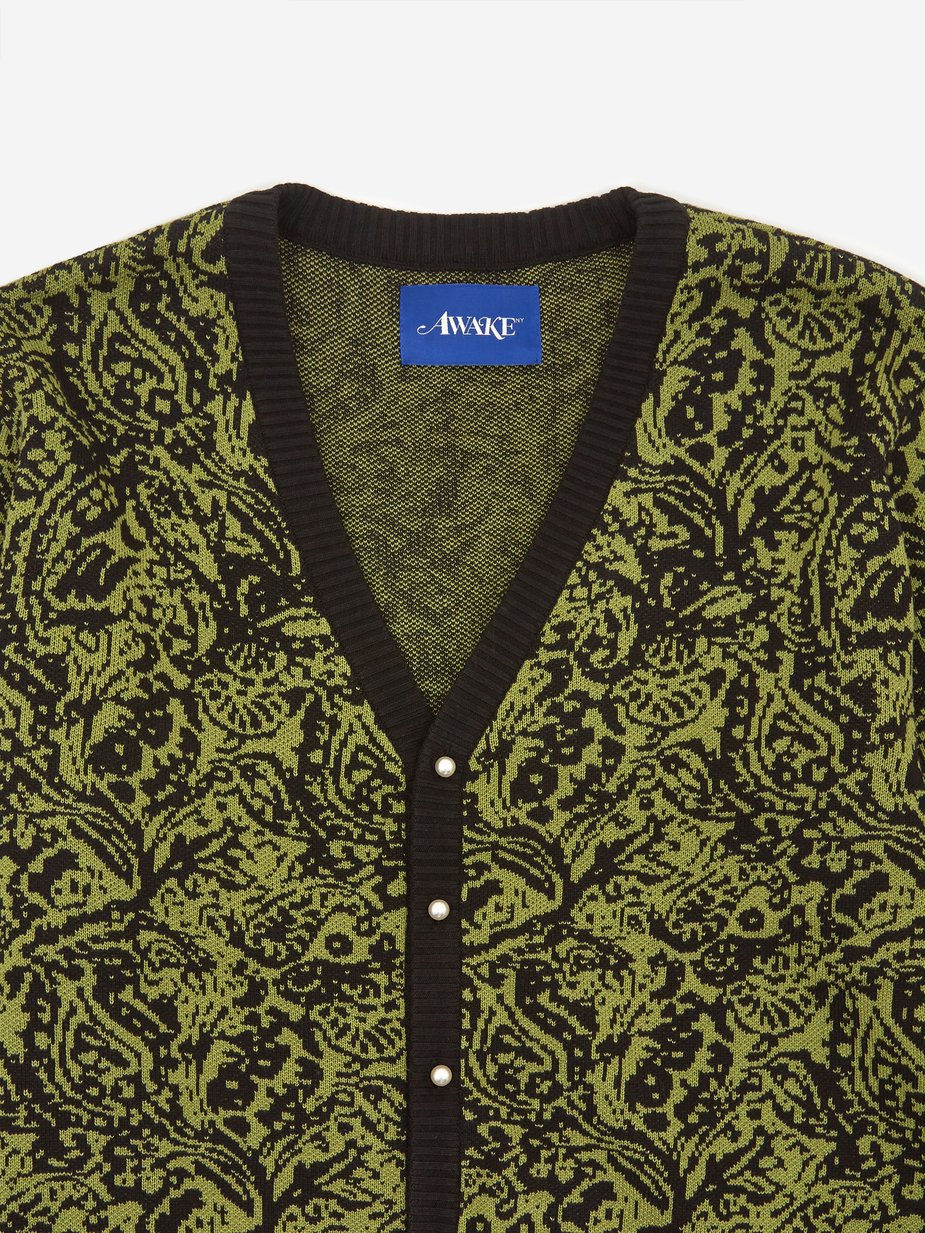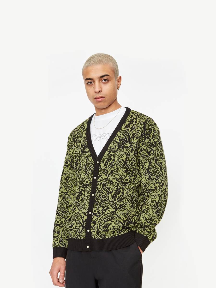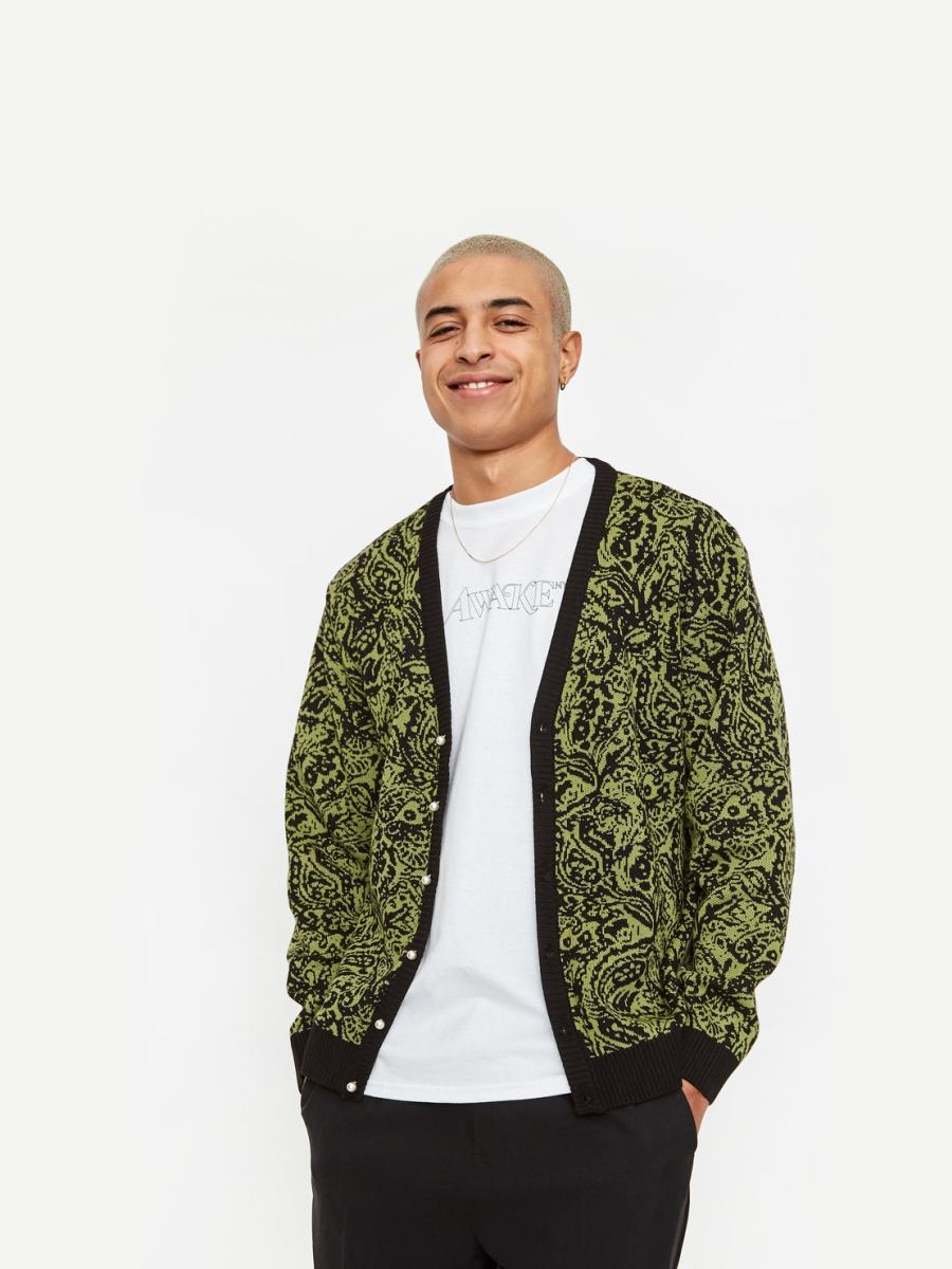 Кардиган Awake Paisley Pearl Button Cardigan Black создан из высококачественного материала. Одновременно классический и современный, Awake NY пробуждает меняющуюся эстетическую яркость и вневременность Нью-Йорка. Вязаный кардиган из смесового хлопка черного цвета с длинным рукавом и зеленым графическим узором пейсли. V-образный вырез, манжеты и подол - трикотажная резинка. Застежка на пуговицы спереди, фурнитура из перламутра.