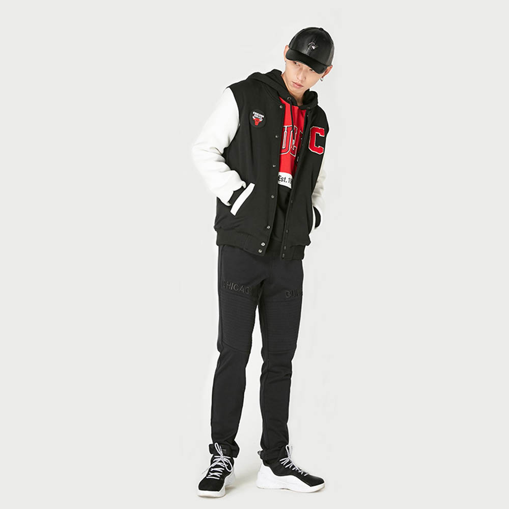 - Бомбер 2020 NBA Chicago Bulls Mens Bomber Black White