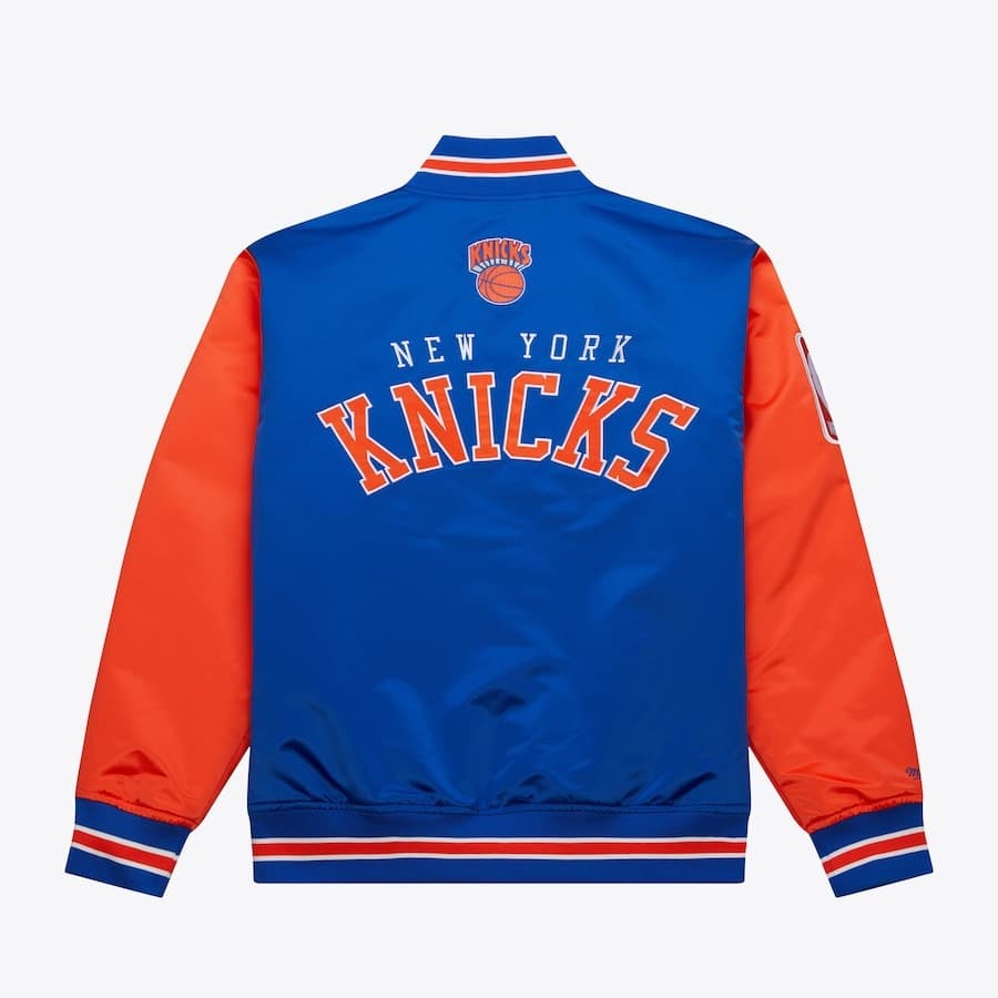 - Бомбер Mitchell & Ness Blue New York Knicks Primetime Vintage Satin Full-Snap Jacket