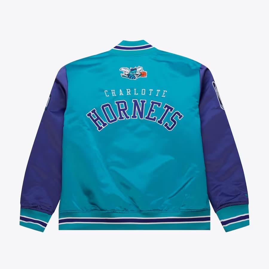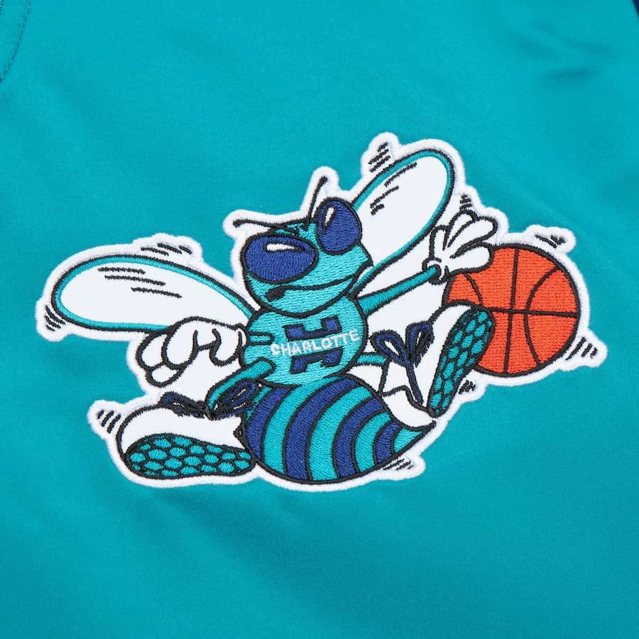Бомбер Mitchell & Ness Teal Charlotte Hornets Primetime Vintage Satin Full-Snap Jacket купить оригинал - цена в Москве и России с бесплатной доставкой