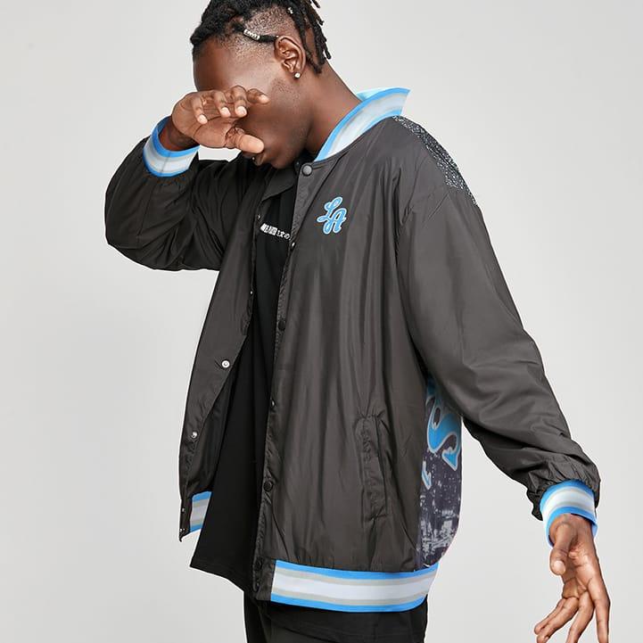 Бомбер Ehot Lakers City Black Bomber придется по вкусу любителю баскетбола и клуба Los Angeles Lakers. Спина куртки украшена бело-голубым принтом с символикой команды и фото города, а грудь - монограммой. Трикотажные манжеты и воротник гармонично дополняют образ. Бомбер застегивается на кнопки и подходит для любой погоды