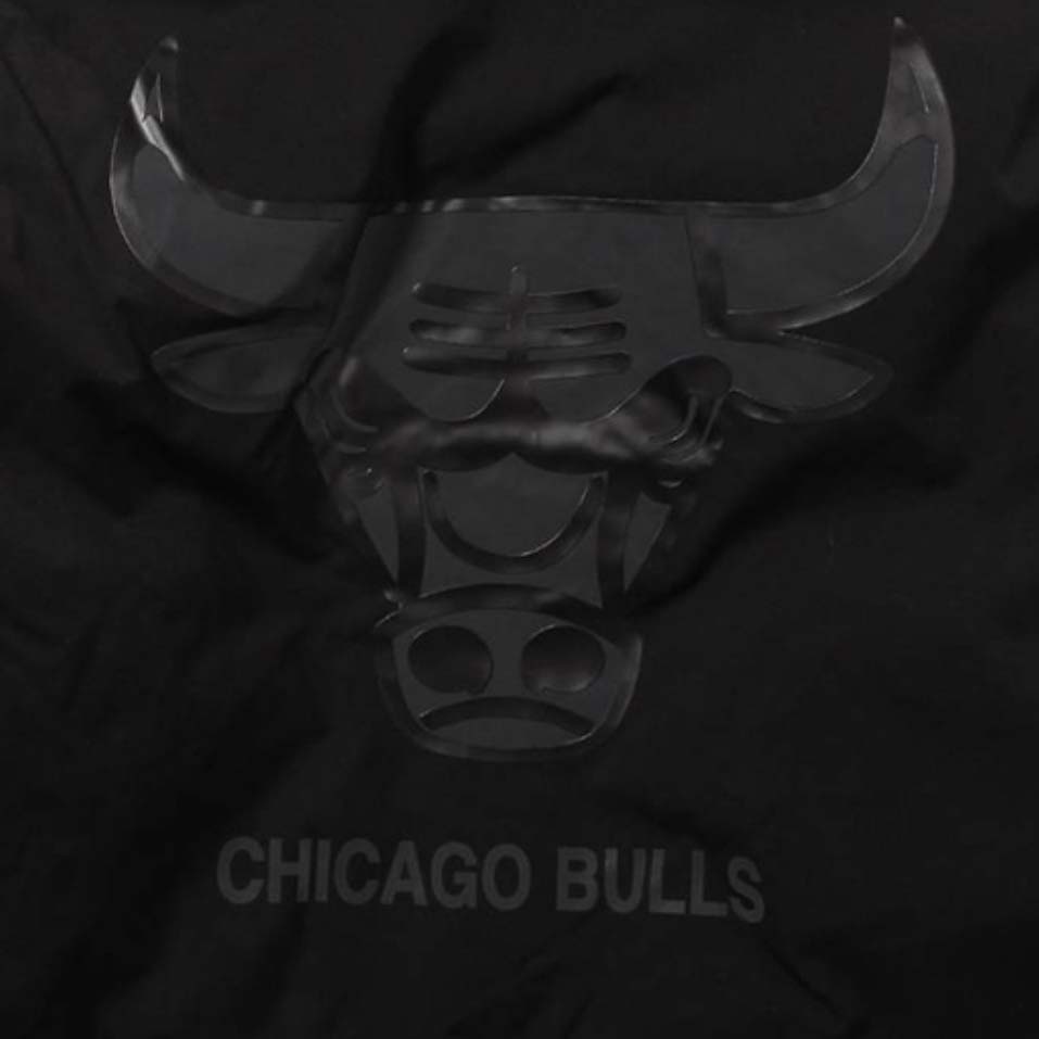 Пуховик 2020 Chicago Bulls Black Khaki Down Jacket Unisex с капюшоном выполнен в двух цветах — черном и хаки. В качестве наполнителя используется утиный пух. На правом рукаве расположена нашивка с лого команды, сзади — название и логотип команды Chicago Bulls.