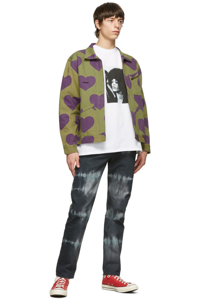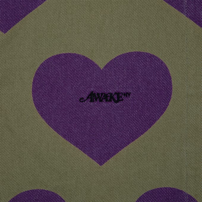 Куртка Awake Hearts Harrington Jacket Army выполнена из высококачественного материала цвета хаки. Она состоит из плотного хлопкового твила цвета хаки с длинными рукавами и фиолетовым графическим узором в виде сердца. Расправленный воротник и частично скрытая молния спереди. Карман на молнии и вышитый черный логотип на груди. Накладные карманы, манжеты на одной пуговице. Регулируемые петлицы на пуговицах по краю спины. Без подкладки и фурнитура цвета латуни.