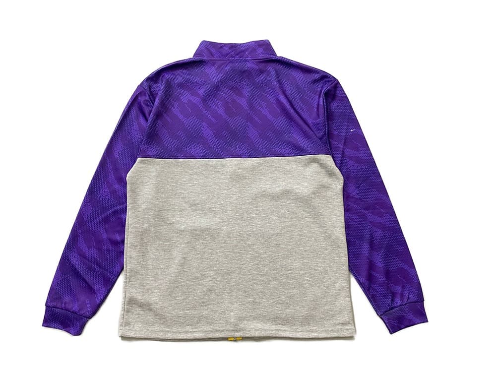 Куртка B20THER NFL Vikings Purple Jacket фиолетового цвета обладает свободным кроем с серой нижней частью и желтыми акцентами. На передней части располагается принт в цветах команды NFL Викингс, замок на молнии и воротник-стойка. Комфортная куртка прекрасно подходит для тренировок, так как не ограничивает движений и изготовлена из быстросохнущего полиэстера.