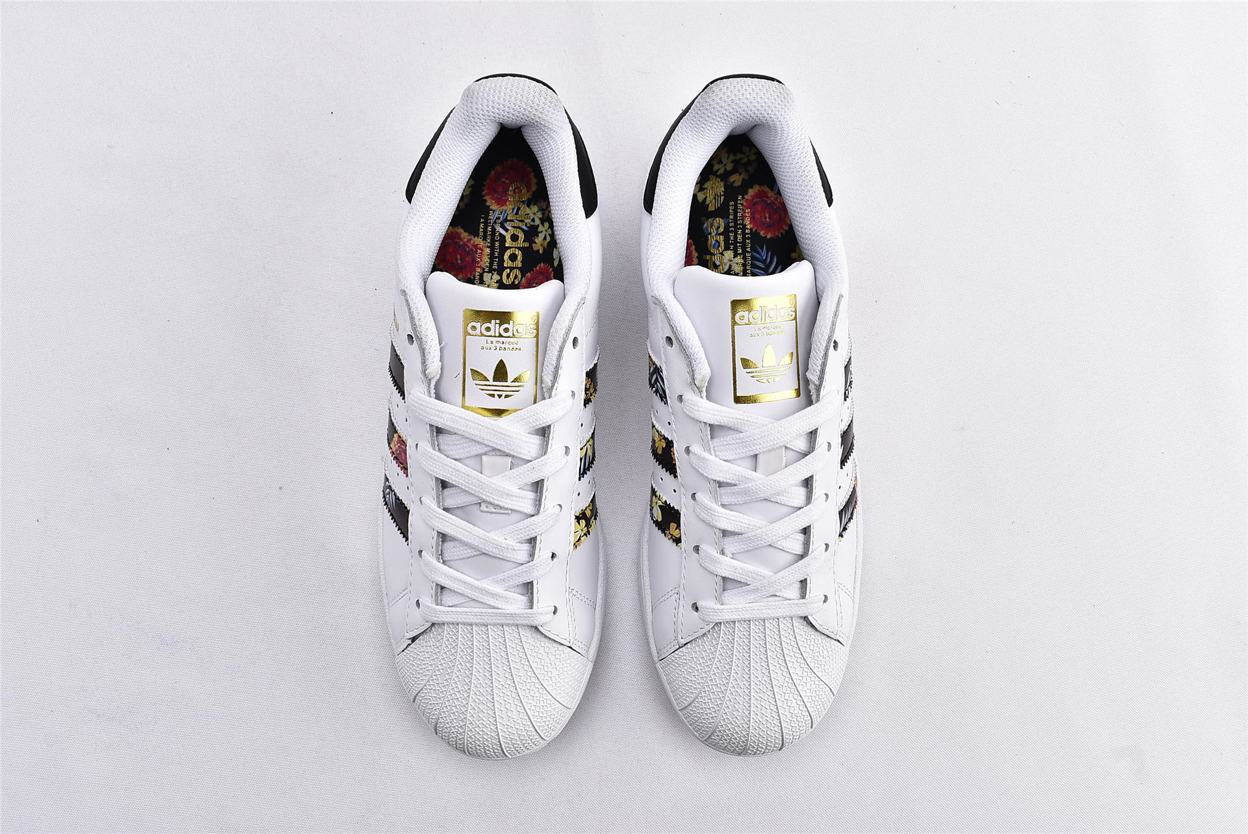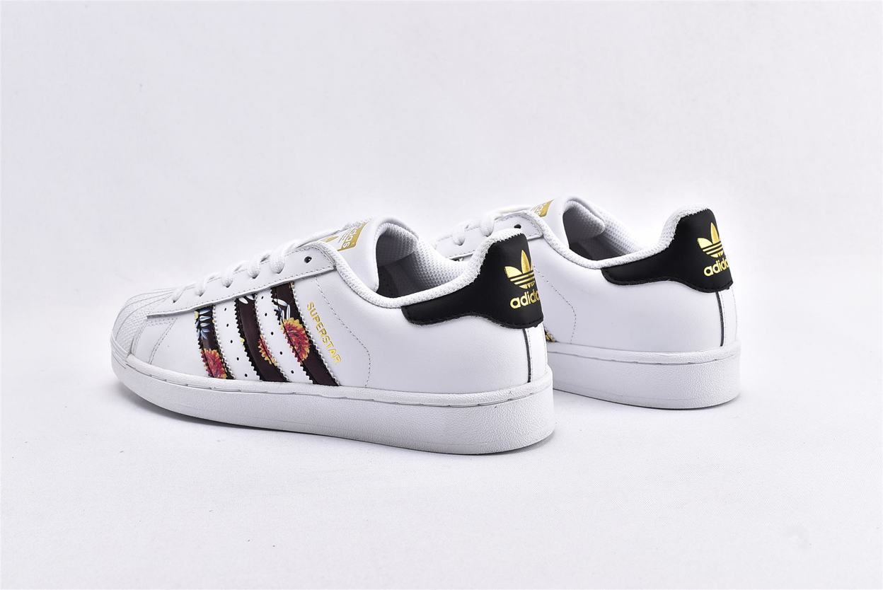 Женская модель adidas Wmns Superstar Gold Metallic имеет определяющие характеристики силуэтов ее предшественников. Кроссовки включают в себя полностью кожаный верх белого цвета с воздухопроницаемой сетчатой подкладкой. Дополняется он тремя полосками с насыщенным цветочным принтом, перфорацией между ними и золотистыми оттенками логотипа Superstar на боковой части. Кроссовки имеют мягкую пятку, прочный носок и белоснежную резиновую подошву.- Цвета: Cloud White/Cloud White/Gold Metallic