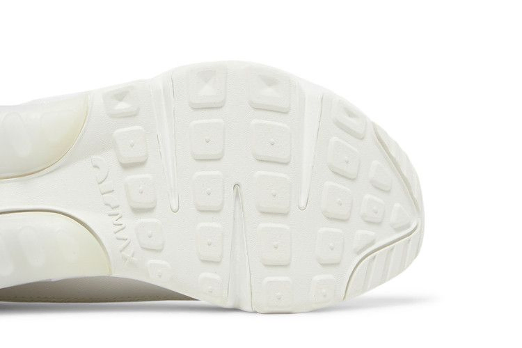 Вдохновленные моделью Air Max 90, Nike Air Max 2090 "Aurora Green" представляют собой нейтральную расцветку с яркими акцентами. Состав верха отличается разной степенью непрозрачности, которая определяется уровнем поддержки: брызговик выполнен из белой кожи, пятка - из мягкой сетки Off-White, а остальная часть верха - из полупрозрачного текстиля. На последнем из них видны детали цвета Aurora Green, совпадающие по цвету с накладками кроссовок.