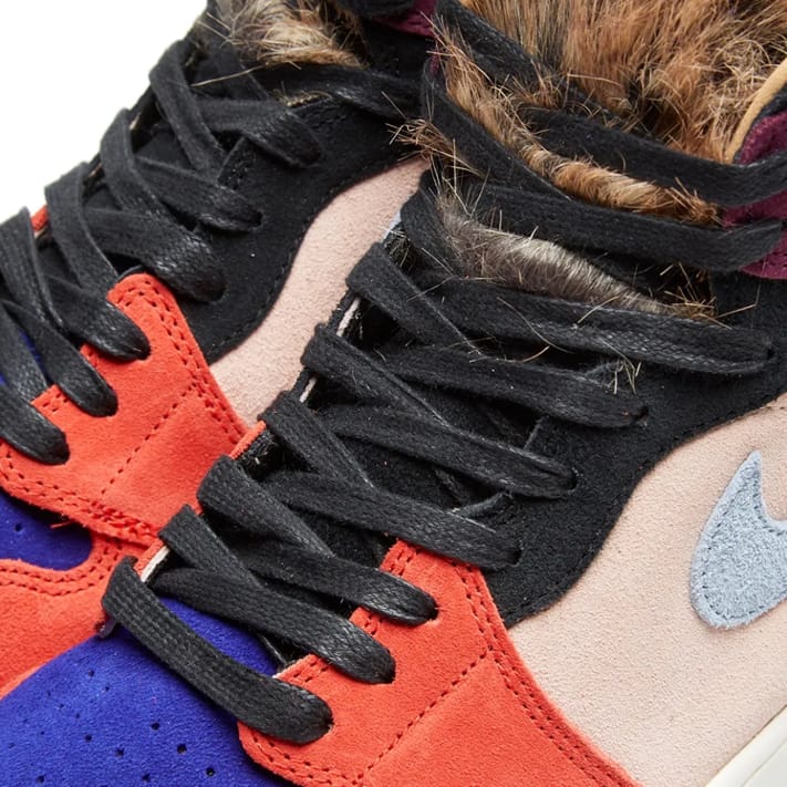 Модель Aleali May x Wmns Air Jordan 1 Retro High - это результат совместной работы знаменитого стилиста из Лос-Анджелеса с Майей Мур и брендом Jordan. Высокий верх выполнен из замши в цветах, вдохновленных фаворитом Мура. Вощеные шнурки и съемный чехол из искусственного меха на язычке завершают дизайн.- Артикул: BV2613-600