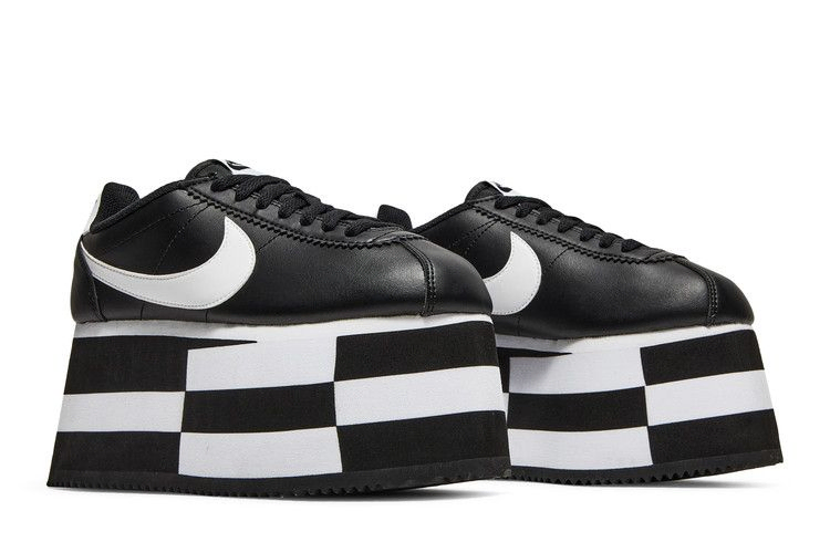 COMME des Garçons привнес в культовую модель Nike Cortez свое эксцентричное чувство моды, представив ее в черной версии Check Black. Кроссовки выполнены из гладкой черной кожи с белыми акцентами на логотипе Swoosh, язычке и пятке. Низкая платформа с клетчатым черно-белым узором создает ощущение ретро 1970-х годов.