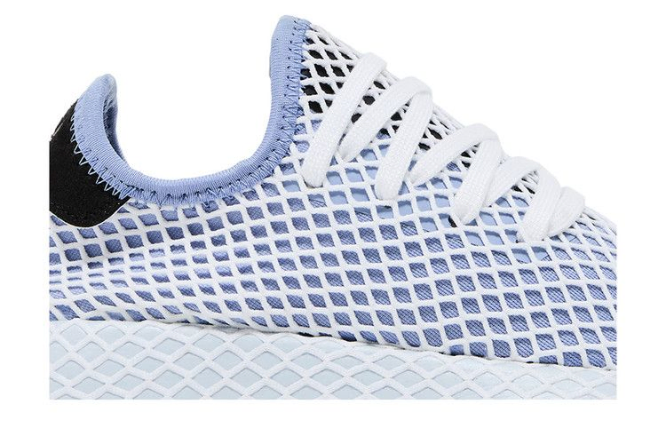 Нежная цветовая палитра женских Deerupt "Chalk Blue" контрастирует с фирменной накладкой из эластичной сетки. Современная форма кроссовок напоминает о винтажных моделях adidas, таких как New York runner и Marathon Trainer. Под сеткой скрывается нежный сетчатый верх Chalk Blue, дополненный более светлой голубой отделкой промежуточной подошвы из EVA.