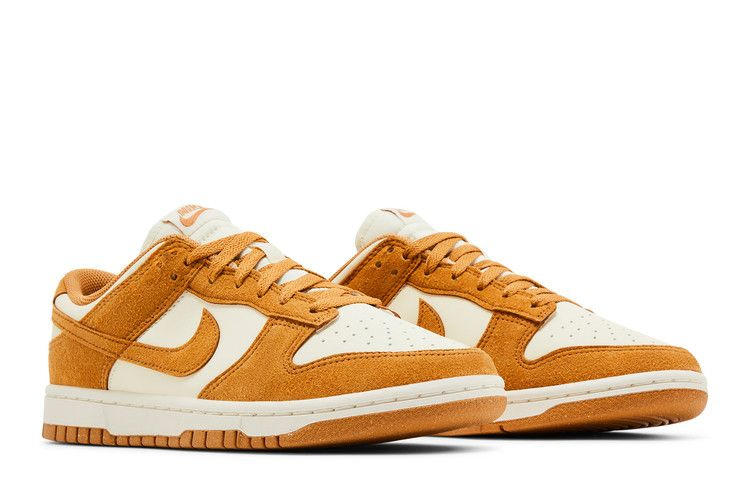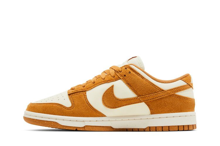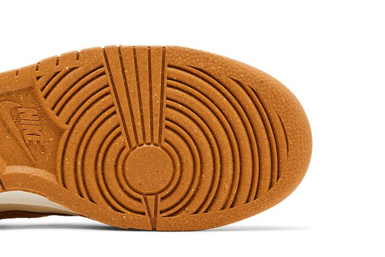 Женские кроссовки Nike Dunk Low Next Nature 'Flax Suede' сочетают в себе основу из искусственной кожи кремового цвета с замшевыми накладками темно-загорелого цвета и подогнанным по цвету логотипом Swoosh. Брендинг Nike расположен на язычке и заднике, а на носочной части красуется ретро-логотип Sunburst, указывающий на то, что обувь изготовлена на 20% из переработанного сырья. Прошитые боковые стенки и прочная резиновая подошва служат опорой для низких кроссовок.