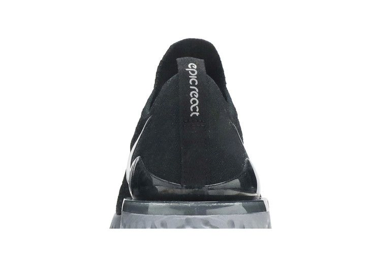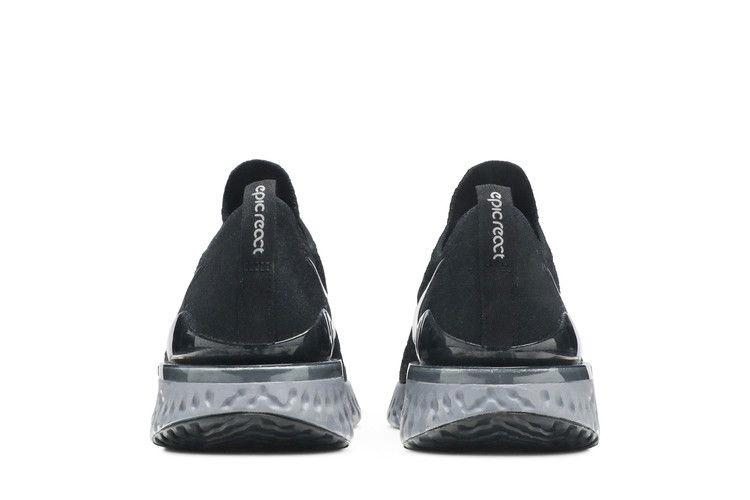 Модель Nike Epic React Flyknit 2 'Anthracite', выпущенная в начале 2019 года и представляющая собой вторую модель в линейке React от Nike, отличается от первой итерации - в первую очередь, измененным дизайном пяточного фиксатора и увеличенным Swoosh - в дополнение к обычной легкой межподошве с сердечником. Эта версия имеет темно-серый трикотажный верх, лакированный Swoosh с небольшой накладкой, серую и черную подошву.