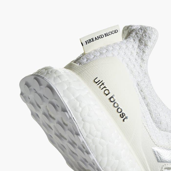 Объединив двух лидеров в своих перспективных отраслях, кроссовки adidas Game Of Thrones x UltraBoost 4.0 'House Targaryen', выпущенные в марте 2019 года, привнесли сериал HBO в семью Boost. Город Старая Валирия повлиял на внешний вид кроссовок, которые имеют белый верх из Primeknit, пятку Fitcounter и брызговик, подчеркнутый металлическими деталями Three-Stripes. Эти элементы представляют собой фирменный светлый цвет лица и серебряные волосы Таргариенов.