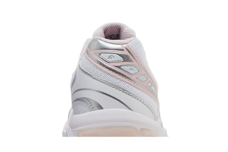 Женские кроссовки ASICS Gel 1130 "White Crystal Pink", выпущенные в рамках серии Heavy Metal Pack, имеют белый сетчатый верх с открытыми ячейками, контрастирующий с накладками из искусственной кожи нежно-розового оттенка. На боковой панели расположены серебристые металлические полоски, а по бокам проходят белые полосы. Кроссовки расположены на белой промежуточной подошве из ЭВА с открытой амортизацией Gel и системой поддержки ASICS TRUSSTIC.