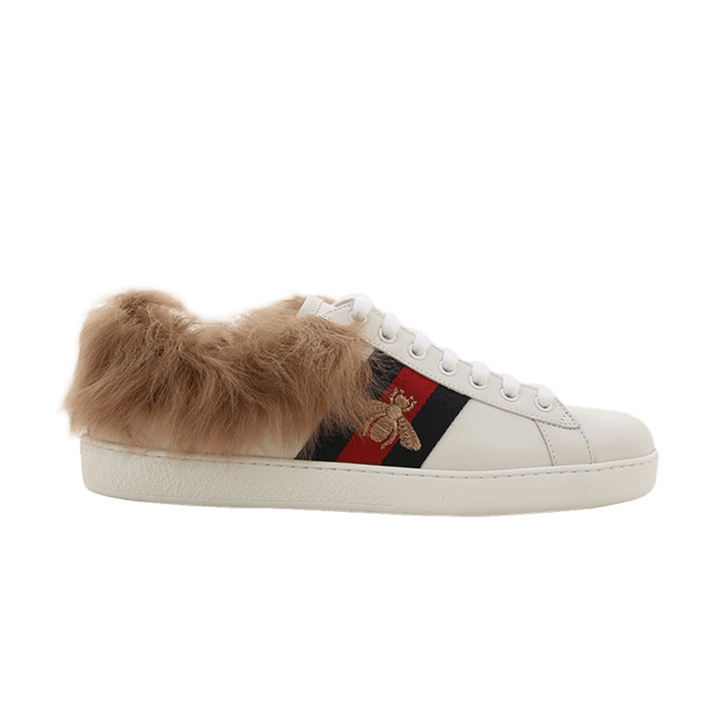 В коллекции осени 2015 года Gucci Wmns Ace Wool Embroidered 'Bee' гармонично сочетаются эксцентричная эстетика Алессандро Микеле и наследие итальянского дома. Созданная из гладкой кожи, эта женская модель украшена металлической пчелой, знаковым символом Web и несовпадающими спинками. Воротник отделан плюшевой овчиной. Резиновая подошва с архивным гребнем Hysteria усиливает спортивный характер силуэта.