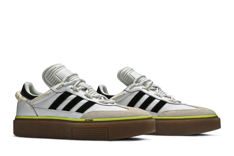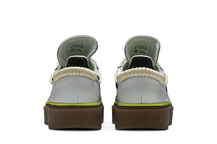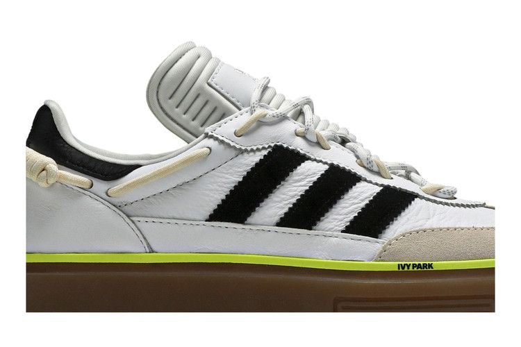 Взятые из капсульной коллекции, созданной совместно с брендом активной одежды Бейонсе, женские кроссовки Ivy Park x adidas Super Sleek 72 'White Gum' представляют собой упрощенную расцветку кроссовок, созданных по образцу SL 72. Петлевая шнуровка фиксирует белый кожаный верх, подчеркнутый контрастными черными полосками на фирменных трех полосках и язычке пятки. Тонкий брендинг Ivy Park выделяет неоново-желтую накладку, которая обвивает основание верха, уступая место платформенной подошве из полупрозрачной резины.