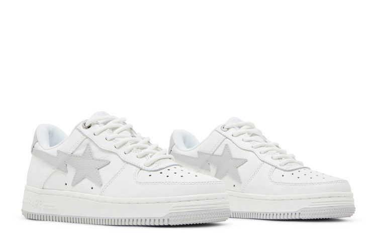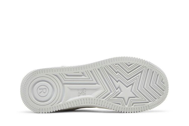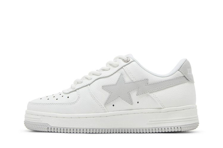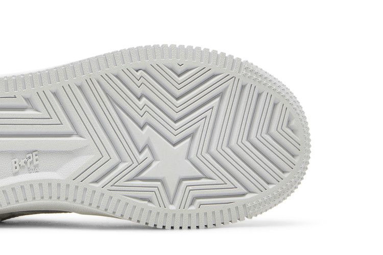 Женские Bapesta 'White' от JJJJound x A BATHING APE - это минималистичная интерпретация силуэта в стиле lifestyle от Джастина Сондерса. Веревочные шнурки фиксируют белый кожаный верх с перфорацией на носке и фирменным логотипом Sta на серой коже. Язычок из воздухопроницаемого нейлона украшен тканой биркой BAPE, а фирменный знак JJJJound украшает серый кожаный язычок на пятке и стельку с сетчатой подкладкой. Низкий топ опирается на резиновую подошву с белыми боковинами и прочной серой резиновой подошвой.