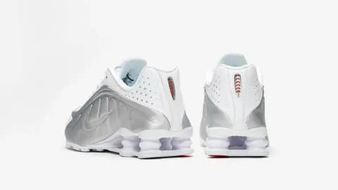 Переосмысление кроссовок, снявшихся в рекламной кампании Nike "Boing, Boing", в этой версии выполнено с характерными волнистыми линиями и перфорацией оригинала, но с современными мерцающими деталями. Вдохновленная пружинящей конструкцией обуви, которую Брюс Килгор придумал в 1984 году, коллекция Shox была выпущена после шестнадцати лет многочисленных доработок и тюнинга.- Цвета: White/White-Metallic Silver-Max Orange