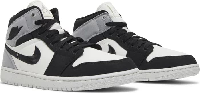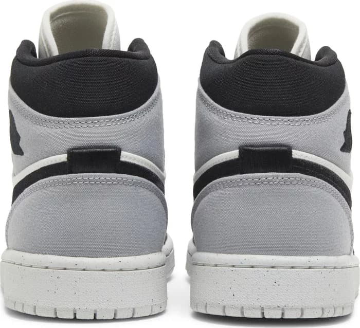 Женские Air Jordan 1 Mid SE Light Steel Grey Canvas изготовлены из воздухопроницаемого холста, имеют белую основу с накладками на носке и пятке черного и серого цвета. Помимо вышитого черного логотипа Swoosh, элементы брендинга включают в себя язычок Jumpman и пришитый логотип Wings на боковой лодыжке, а верхняя часть опирается на белую резиновую подошву с подошвой Air-sole, заключенной в легкую полиуретановую танкетку.