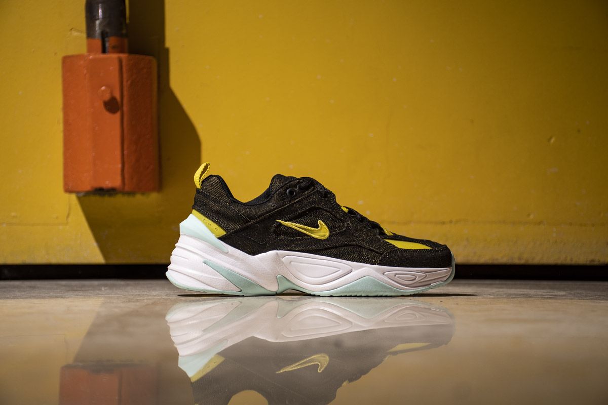 Заказать поиск кроссовок Nike M2k Tekno Twill Denim (W) с бесплатной доставкой. Эта итерация обуви выполнена в верхней части из твила и джинсовой ткани с узором из диагональных ребер. Темный оттенок дополняют желтые акценты поверх белой межподошвы и светло-синей резиновой подошвы. Розничный ценник установлен на уровне 100 долларов США.