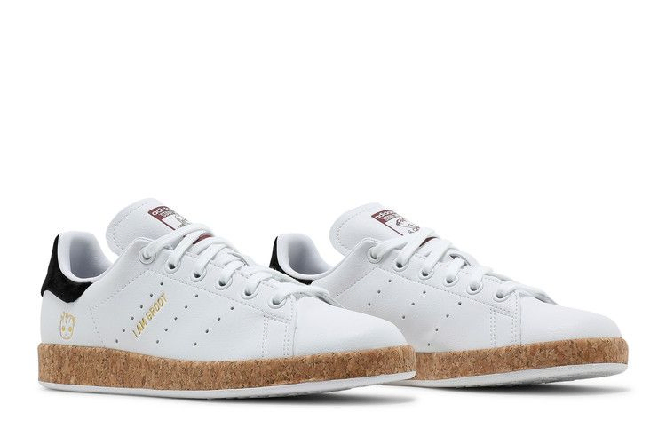 Женские Stan Smith "I Am Groot" от Marvel x adidas отличаются экологичным дизайном, который отдает дань уважения дендроиду из "Стражей Галактики". Верх из белой искусственной кожи, частично изготовленный из переработанного сырья, украшен изображением малыша Грута на боковой пятке и надписью "I Am Groot" на заднике. На черном замшевом язычке пятки слева и справа вышита надпись "It's Not Easy Being Green". Подошва кроссовок состоит из пробковой межподошвы и белой резиновой подошвы.