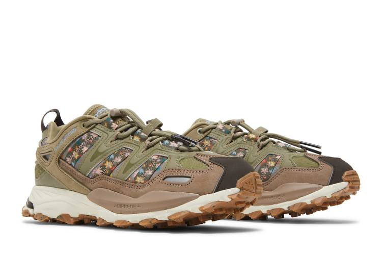 Moomin x adidas Women's Hyperturf 'Moominvalley Charms' - это трейл-ботинки, вдохновленные сказками финской писательницы Тове Янссон. Шнуровка на шнурке фиксирует многослойную конструкцию из текстиля и замши, выполненную в земляных оттенках оливково-зеленого и коричневого. Помимо сменных брелоков-символов, верхняя часть украшена разноцветным цветочным принтом на четверти и тремя полосками из тесьмы. Прочный силуэт располагается на промежуточной подошве из ЭВА с амортизацией Adiprene+ в передней части стопы. Подошва из резины обеспечивает надежное сцепление с неровной поверхностью.- Артикул: HQ8949