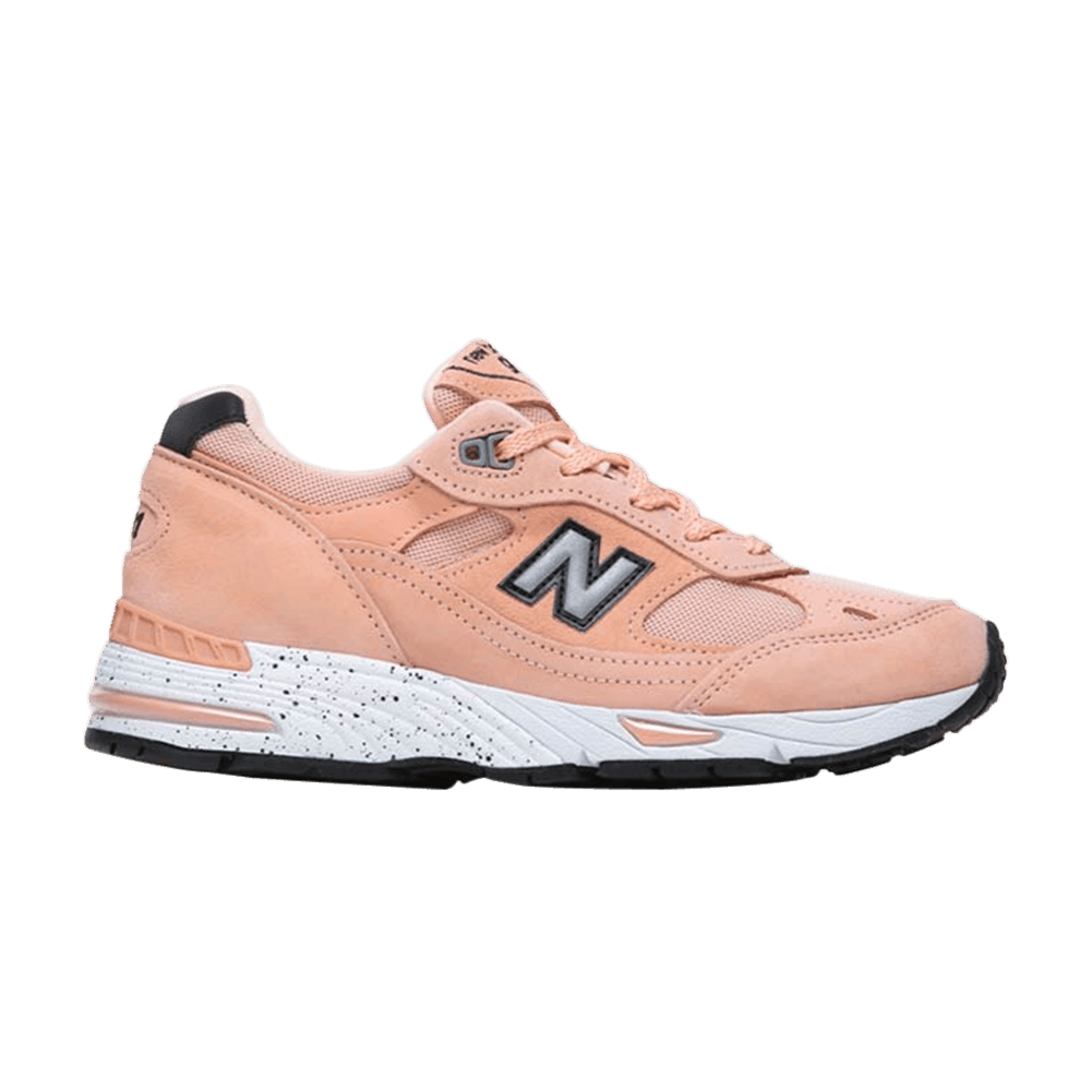 Копенгагенский магазин женских кроссовок Naked объединился с New Balance, чтобы создать улучшенную версию модели New Balance 991 "Made in England". Эта версия имеет персиковый сетчатый верх с накладками из свиной замши, контрастные детали, такие как черный и серебряный брендинг на средней части стопы, а также черные детали на язычке и пятке. Naked x Wmns 991 'Made In England' также имеют вставки на подошве с совместным брендом, промежуточную подошву Abzorb и черные акценты Naked на кончиках шнурков.