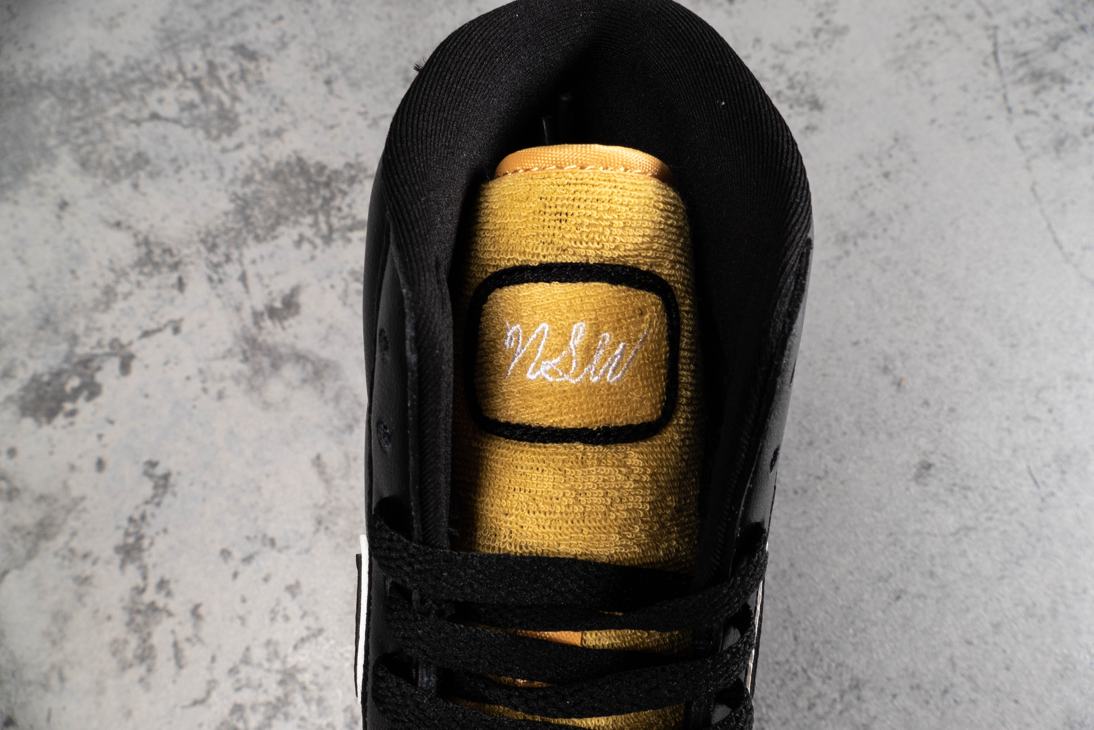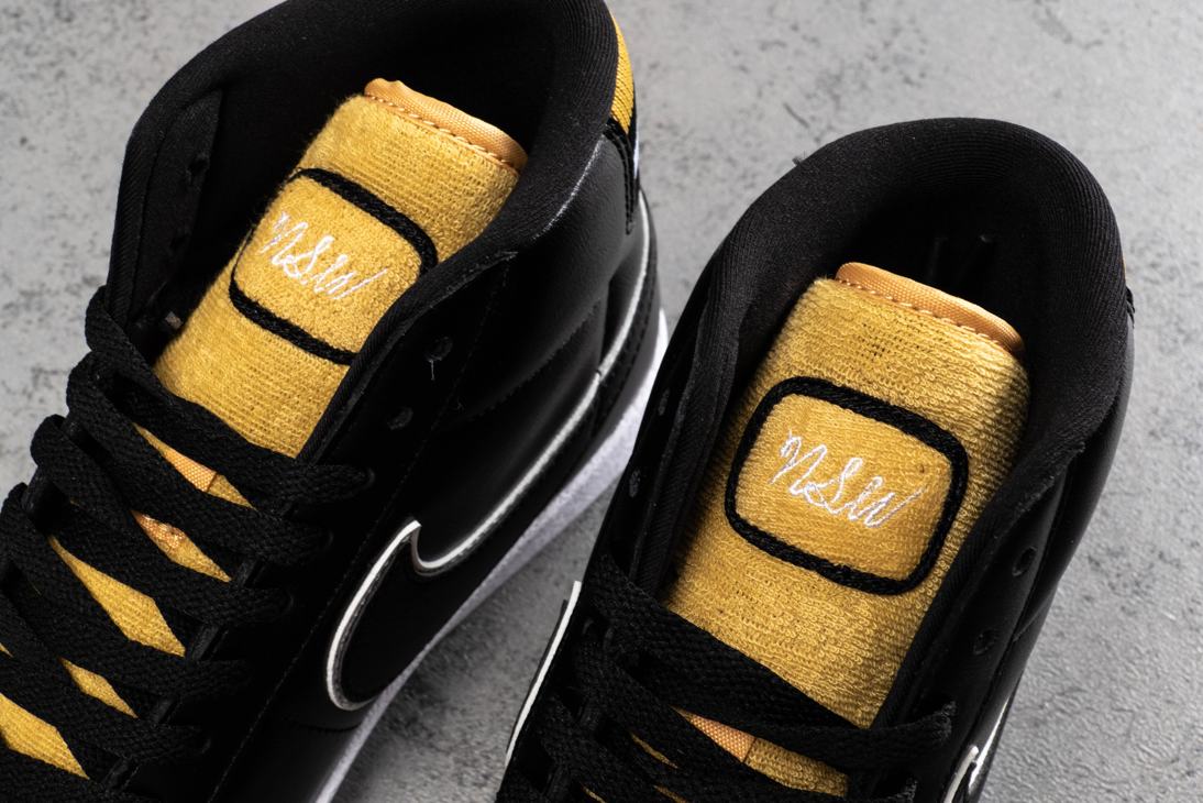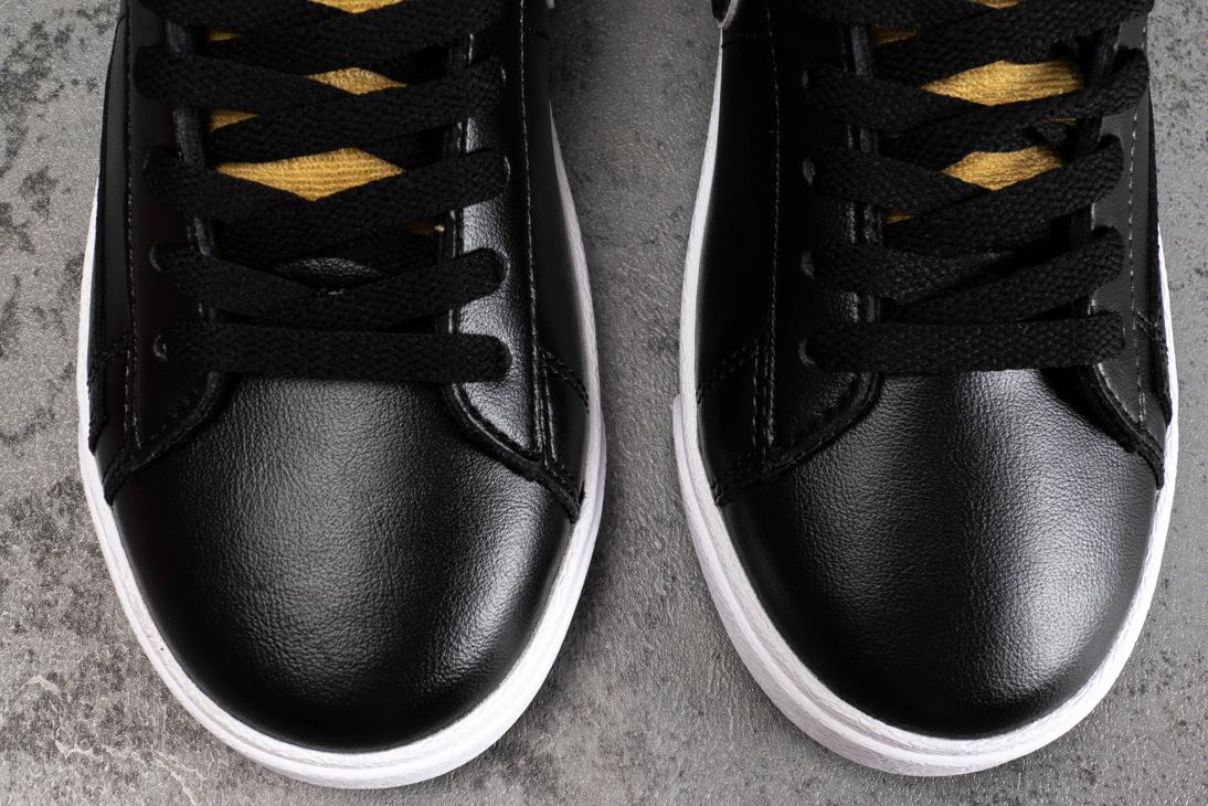 Женская модель Nike Blazer Mid Black Wheat Gold W представляет собой дизайнерский "атласный" черный верх с отделкой комбинированной палитры воротничка и язычка из золотистого и белого оттенков. Такая же черная система шнуровки идеально сочетается с верхнем оснащением и фирменным черным логотипом Nike в тонкой белой окантовке. Завершает силуэт белоснежная высокопрочная резиновая подошва.- Цвета: Black/Wheat Gold-Black