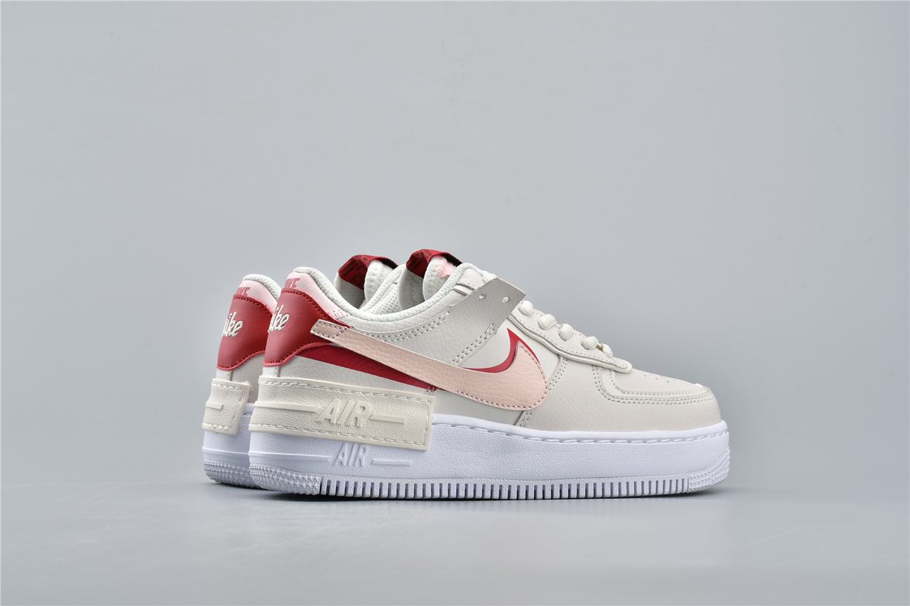 Женская модель Nike Wmns Air Force 1 Shadow Phantom, создана с использованием цветовой гаммы «Phantom», «Gym Red» и «Echo Pink». Кроссовки был разработаны для того, чтобы почтить женщин в их сообществах. Эта обновленная классика Брюса Килгора была выпущена в октябре 2019 года с двойными элементами на стойках, двойным логотипом Swoosh и брызговиком, придавая ему деконструированный вид. Фирменные надписи Nike на пятке, стельке и язычке также удвоены, а мидсоль утолщена для увеличенной высоты.- Цвета: Phantom/Echo Pink/Gym Red