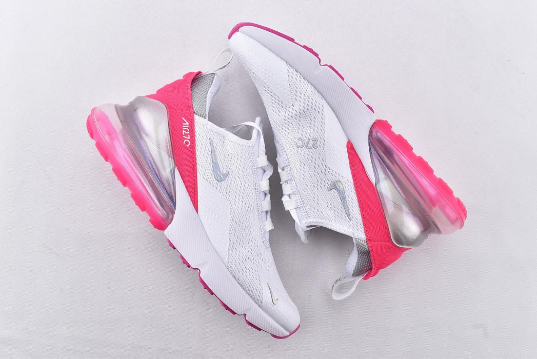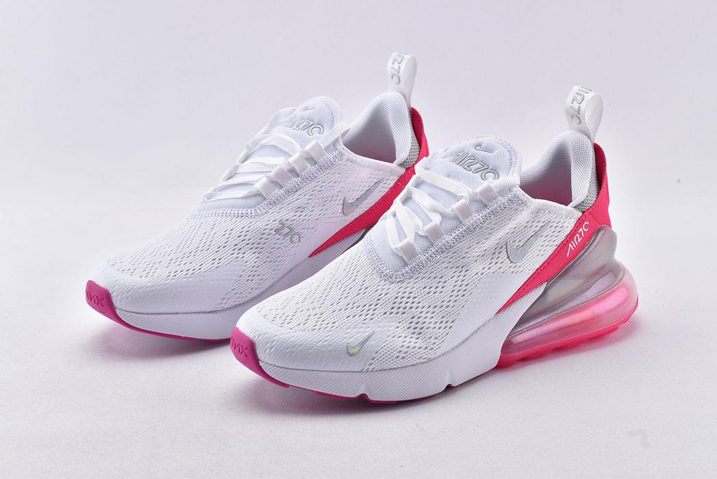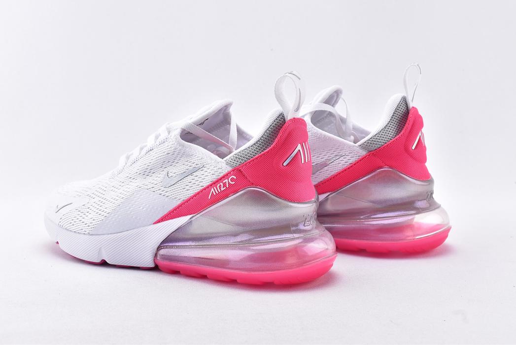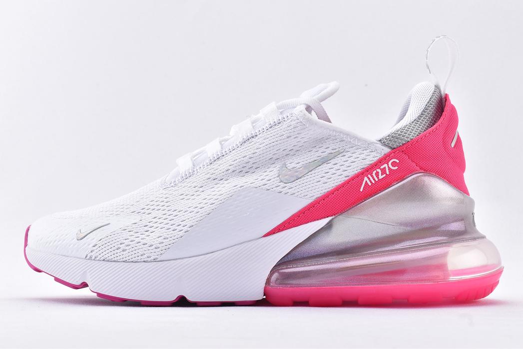 Женская модель Nike Wmns Air Max 270 Multi Color White оснащена верхом в цветовой палитре Summit White с открытой сеткой. Средняя часть включает в себя ярко-розовые акценты вдоль пяточной части с изображением счетчика времени. Деталь из TPU для поддержки пяточной части стопы дополнена полупрозрачным блоком Max Air для лучшей амортизации.- Цвета: White/Multi-Color-White