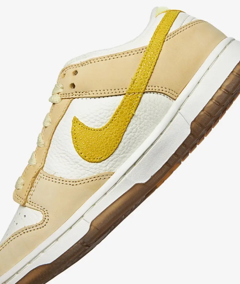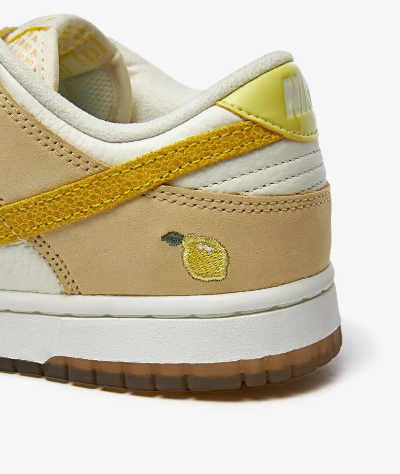 Женская обувь Nike Dunk Low «Lemon Drop» придает обручам 80-х летний вид. В кроссовках используется белый кожаный верх с приглушенными желтыми накладками, напоминающими цвет мякоти лимона, в то время как более пикантный оттенок желтого нанесен на Swoosh. Явный намек на цитрусовые в виде вышитого рисунка на боковой части пятки. Дополнительные уникальные детали включают дышащий язычок с открытой сеткой и полупрозрачную резиновую подошву.- Цвет: Lemon Drop/Opti Yellow/Sail/Zitron