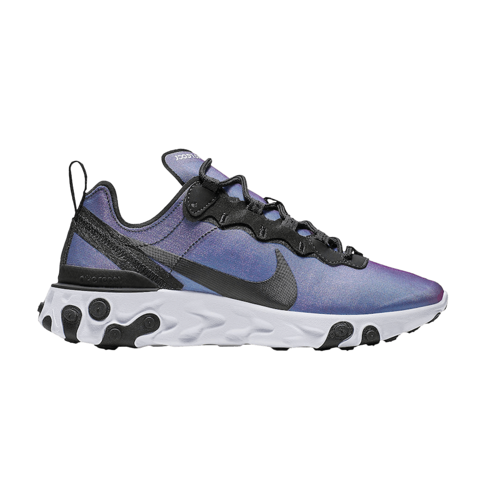 Выпущенные в марте 2019 года кроссовки Nike React Element 55 "Sunset" слегка изменили React Element 87, получив обновленный дизайн. Заменив полупрозрачный верх 87-й модели на текстиль и синтетику, кроссовки, вдохновленные природой, повторяют градиентный цвет вечернего неба. Подошва React с направленными резиновыми вставками обеспечивает инновационный комфорт, оптимальный отскок и долговечность.