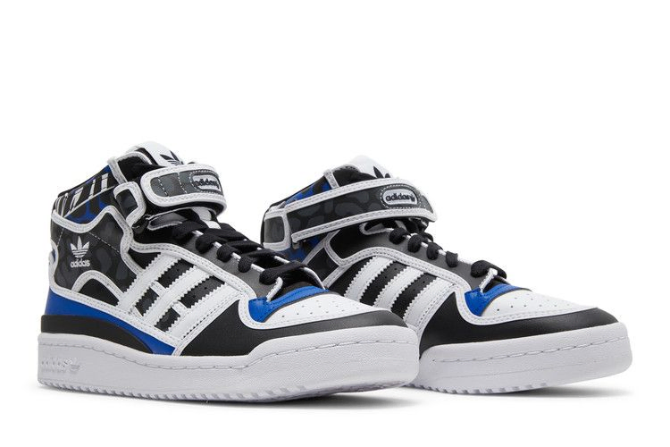 Женские кроссовки Rich Mnisi x adidas Forum Mid "South African City Life", выпущенные в рамках дебютной коллекции южноафриканского дизайнера, переосмыслили винтажную обувь с помощью смелых принтов и экологичной конструкции. Верх из искусственной кожи, изготовленный с использованием не менее 50% переработанного сырья, имеет контрастный черно-белый дизайн с цветовыми акцентами в королевском синем. Полосы зебры расположены на воротнике, а тональный леопардовый принт украшает регулируемый ремешок на щиколотке и фирменную X-образную накладку. Подставка для мид-топа - прочная резиновая подошва цвета Cloud White.