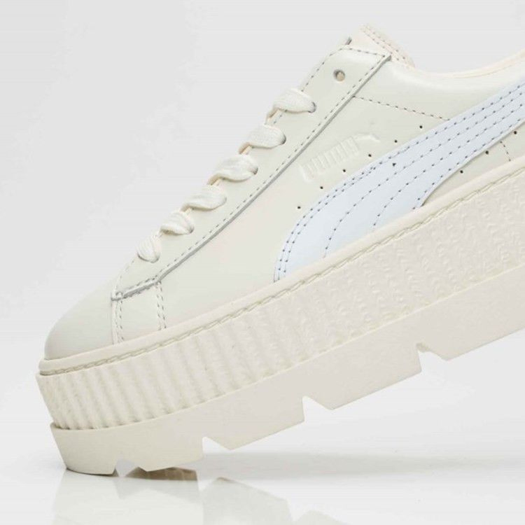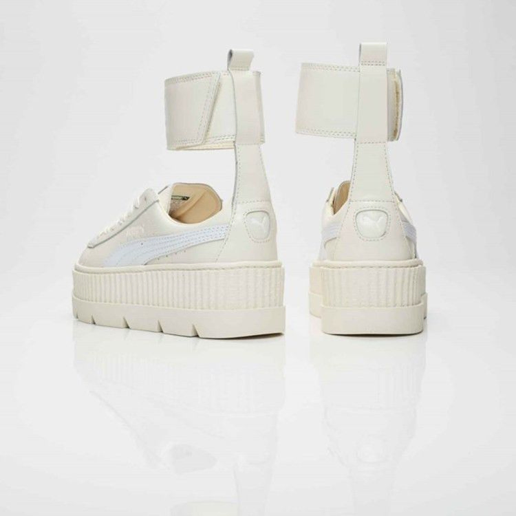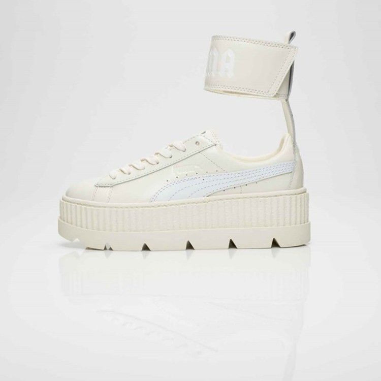 В своем третьем сезоне в качестве креативного директора Puma Рианна переработала ряд наиболее известных силуэтов бренда в оригинальные модели. Большая часть коллекции Fenty Puma использует в качестве отправной точки приподнятую подошву Creeper, и модель Rihanna x Fenty Ankle Strap Sneaker "Vanilla Ice" не стала исключением. Кроссовки цвета "ванильный лед" и Puma White выполнены из натуральной кожи и оснащены фирменным ремешком на щиколотке с логотипом Puma.