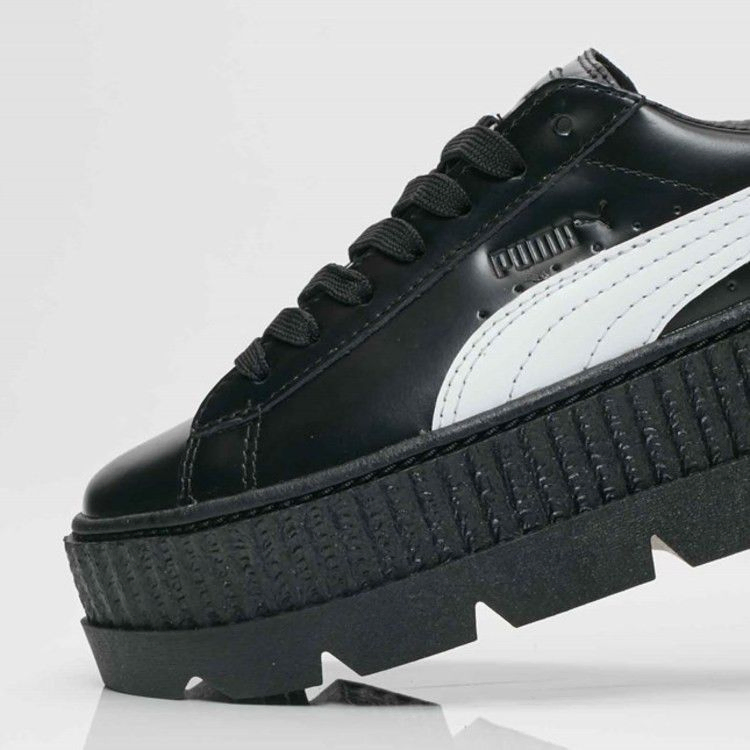Модель Fenty Puma Creeper от Рианны получила современный дизайн, в котором сохранилась платформенная подошва. Верх выполнен из натуральной кожи и украшен белым кожаным логотипом Swoosh, а ремешок на лодыжке проходит по икре. Кожаная застежка украшена смелой надписью Puma.
