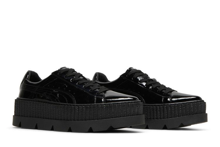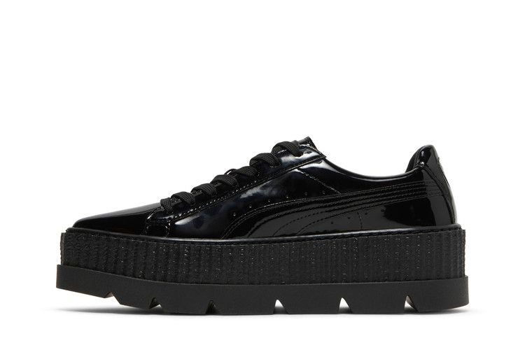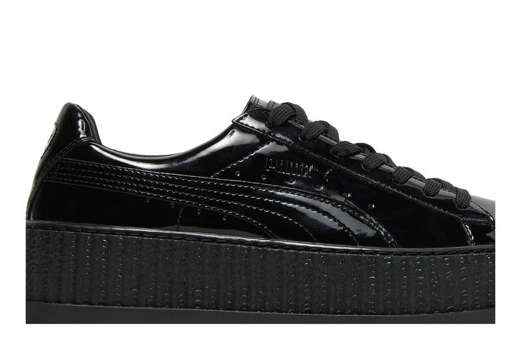 Часть коллекции Fenty Puma by Rihanna от октября 2017 года, эта тройная черная версия Pointy Creeper выполнена из черной лакированной кожи. Модель стоит на толстой резиновой платформе и подошве с зазубринами. Обратите внимание на тисненые логотипы Puma и кобрендовые стельки.