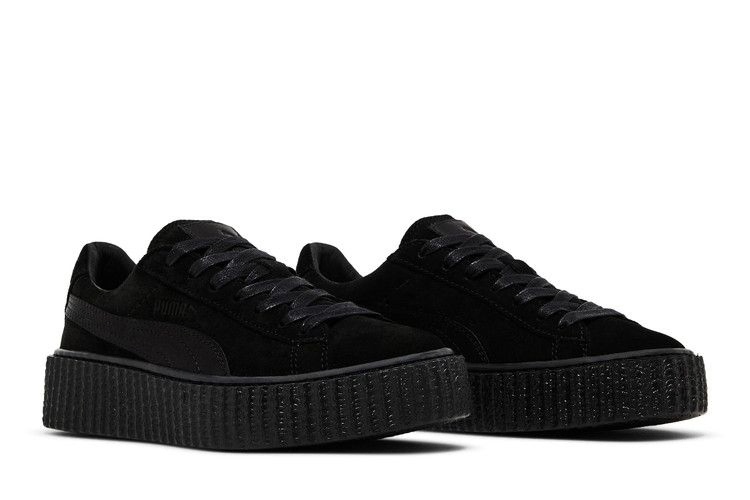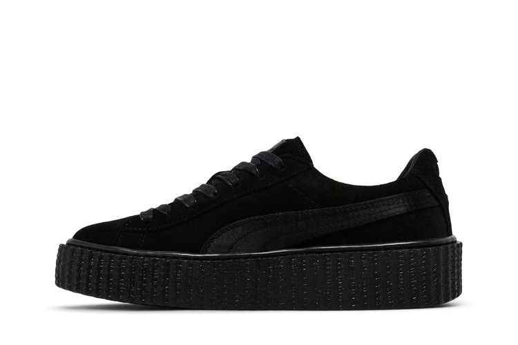 Суперзвезда поп-музыки Рианна объединилась с Puma в 2014 году, чтобы запустить проект Fenty x Puma, в котором она получила титул креативного директора. Среди ее первых творений - переосмысленная классическая замша Puma, представленная здесь в виде Fenty x Wmns Suede Creepers 'Black'. За основу этого силуэта взят легендарный кроссовок Puma, только драпированный в черный цвет, с преувеличенной, ребристой подошвой, на которую повлияла обувь, которую носили поклонники панка и рокабилли.
