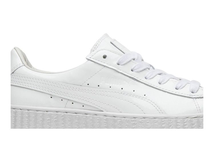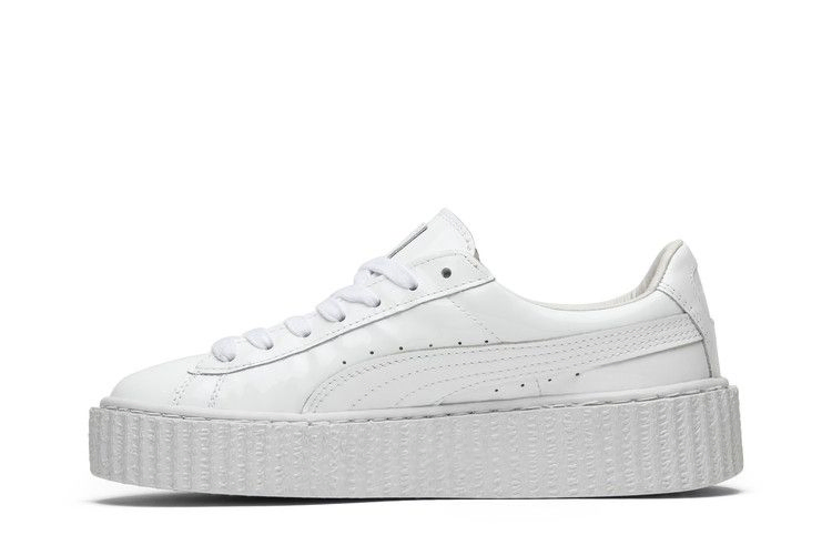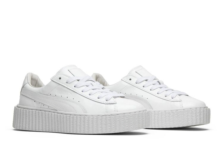 Как креативный директор и посол бренда Puma, Рианна продолжает расширять свою коллекцию криперов. Модель Rihanna x Patent Leather Creepers SS16 имеет верх из лакированной белой кожи, шнурки и язычок, а также перфорацию вдоль боковой стороны для воздухопроницаемости. Низкий верх также может похвастаться фирменной толстой подошвой с дополнительной амортизацией и простроченной полосой Formstripe, которая проходит от середины стопы до пятки.