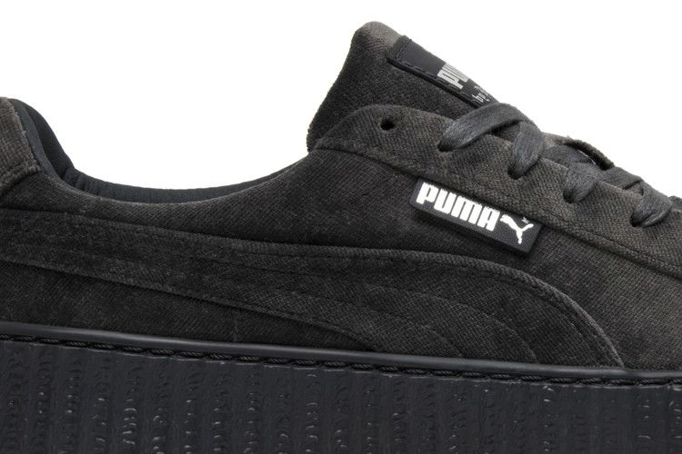 Под влиянием обуви "крипер", которую носили поклонники панка и рокабилли, поп-суперзвезда Рианна создала силуэт с очень толстой ребристой подошвой для своей первой совместной работы с Puma. Эта версия, Puma Fenty x Wmns Velvet Creeper 'Cement', была выпущена в 2014 году. Модель имеет роскошный бархатный верх глубокого серого оттенка, минимальный брендинг на язычке, боковой стороне и пятке, а также полоску формы Puma с обеих сторон.